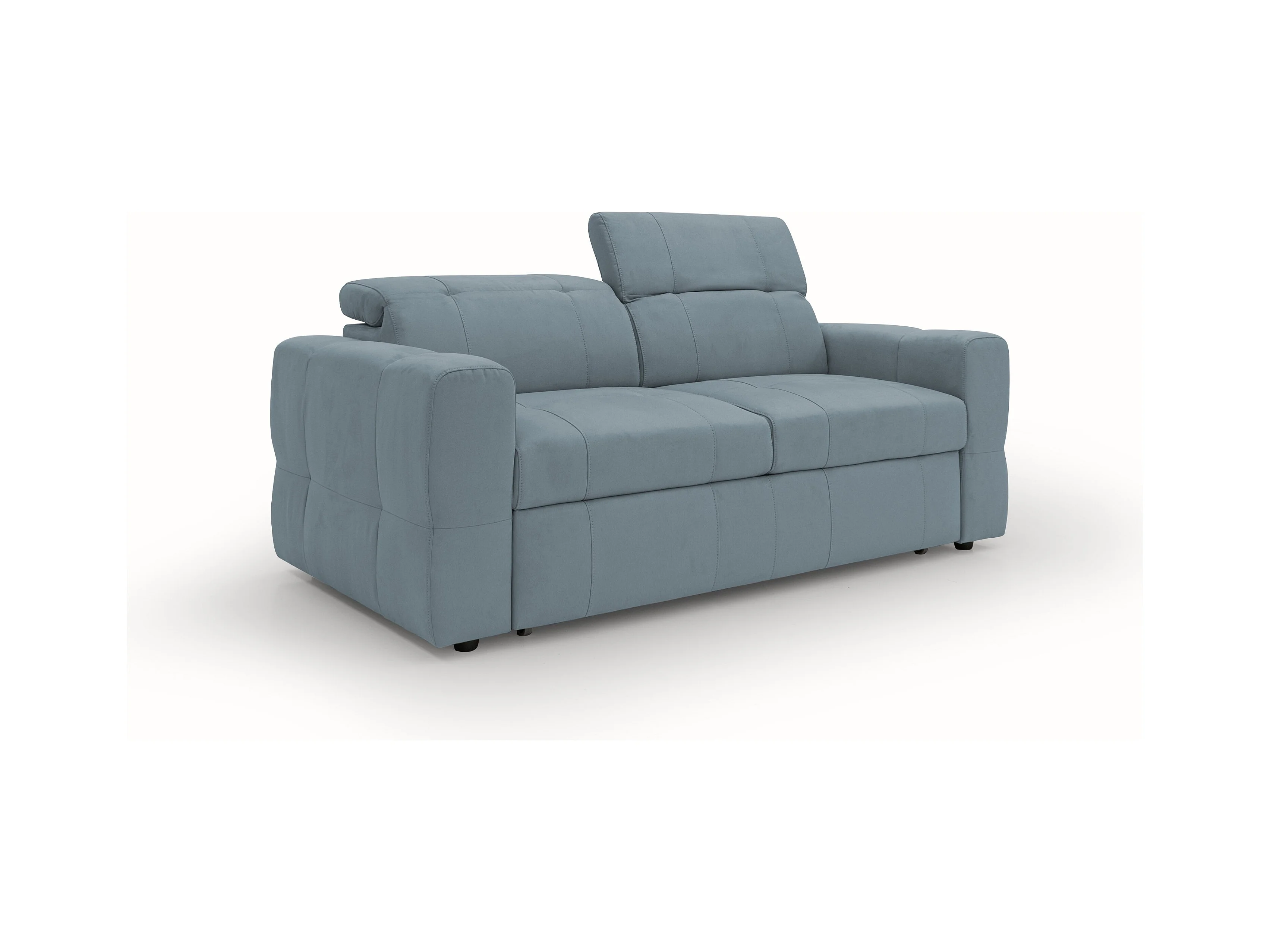 Kronos 2-Sitzer Sofa 173 cm mit ausziehbarer Ottomane und verstellbare Kopfstützen aus weicher wasserfester Mikrofaser T11 Baby Blau