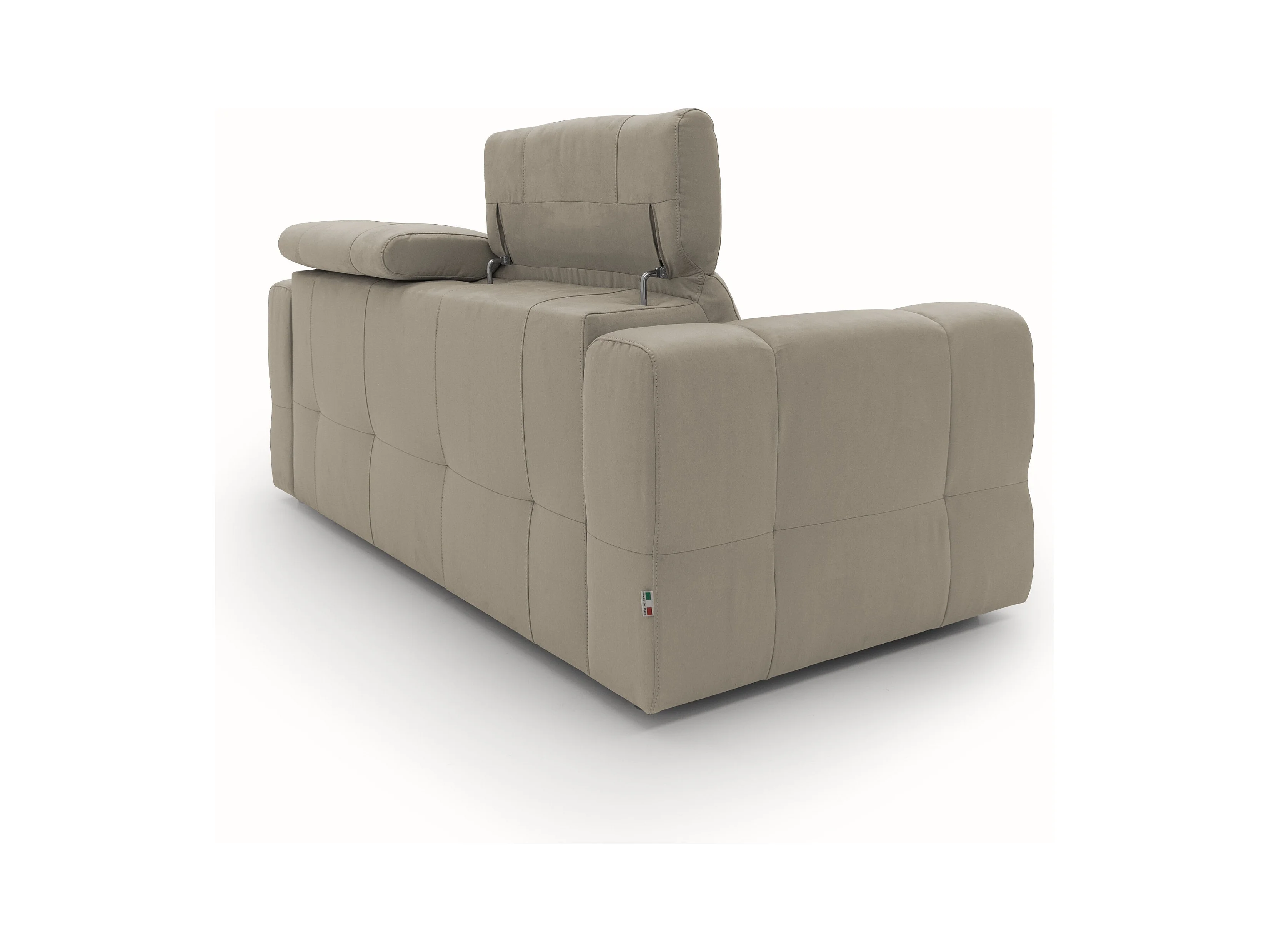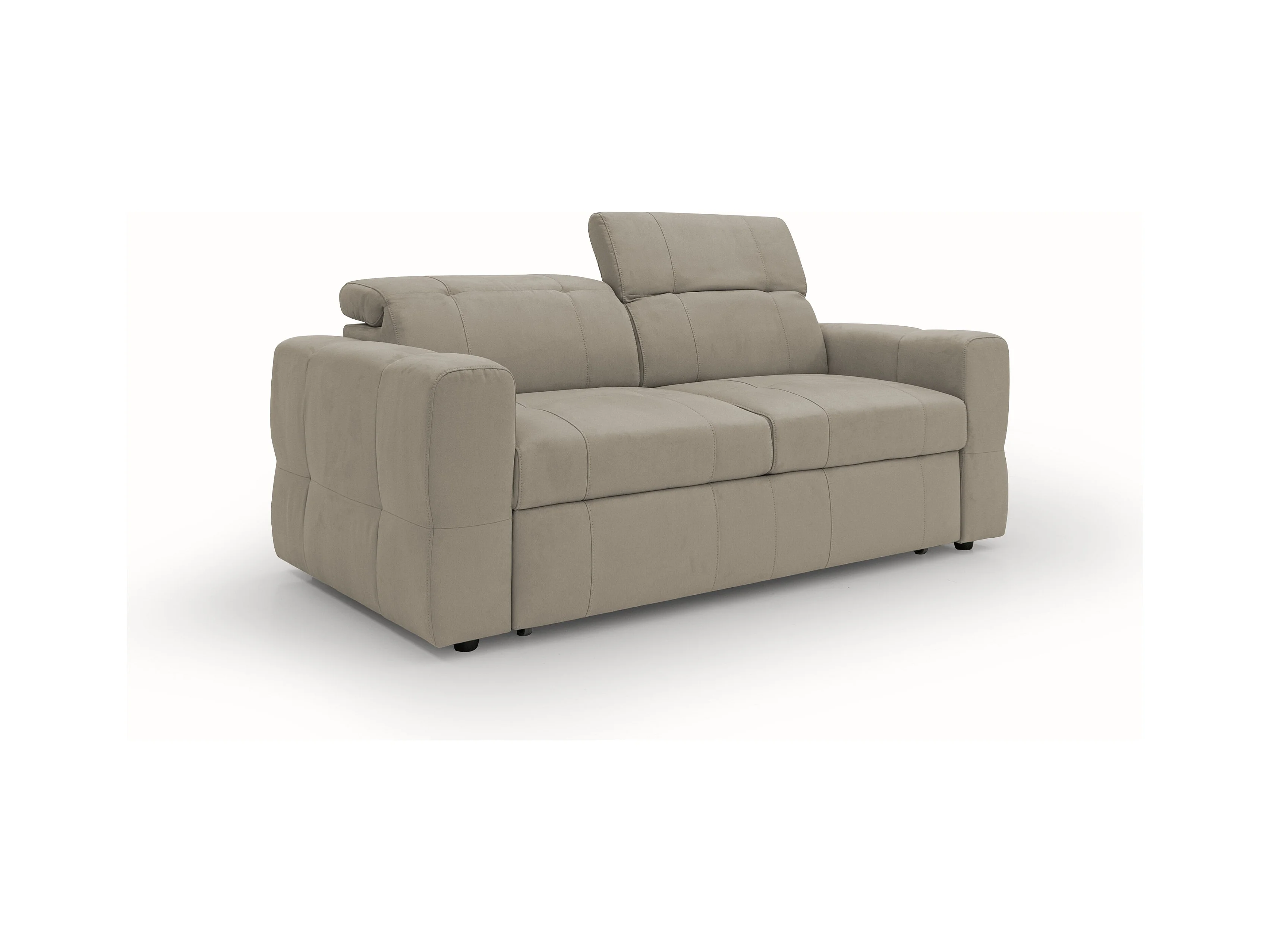 Kronos 2-Sitzer Sofa 173 cm mit ausziehbarer Ottomane und verstellbare Kopfstützen aus weicher wasserfester Mikrofaser T11 Graubeige