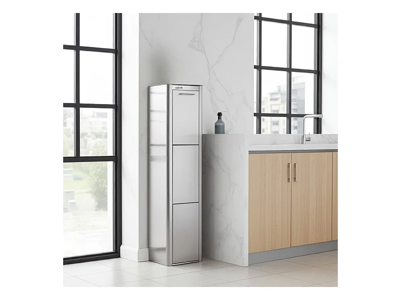 Küchenabfalleimer - Mülltrennungssystem mit 3 Fächern à 20 Litern - Edelstahl -CUBEK