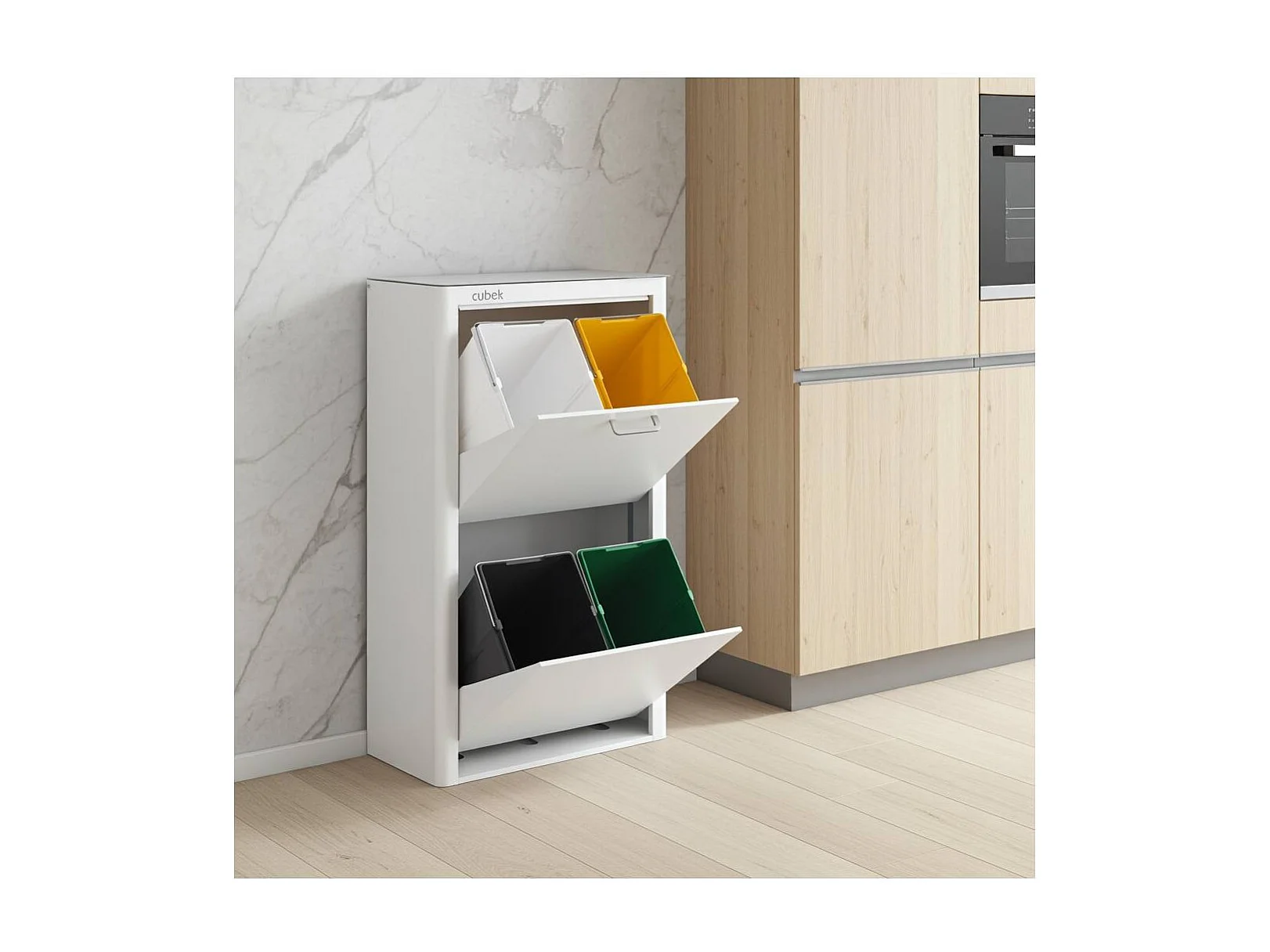 Küchenabfalleimer - Mülltrennungssystem mit 4 Fächern à 20 Litern - CUBEK