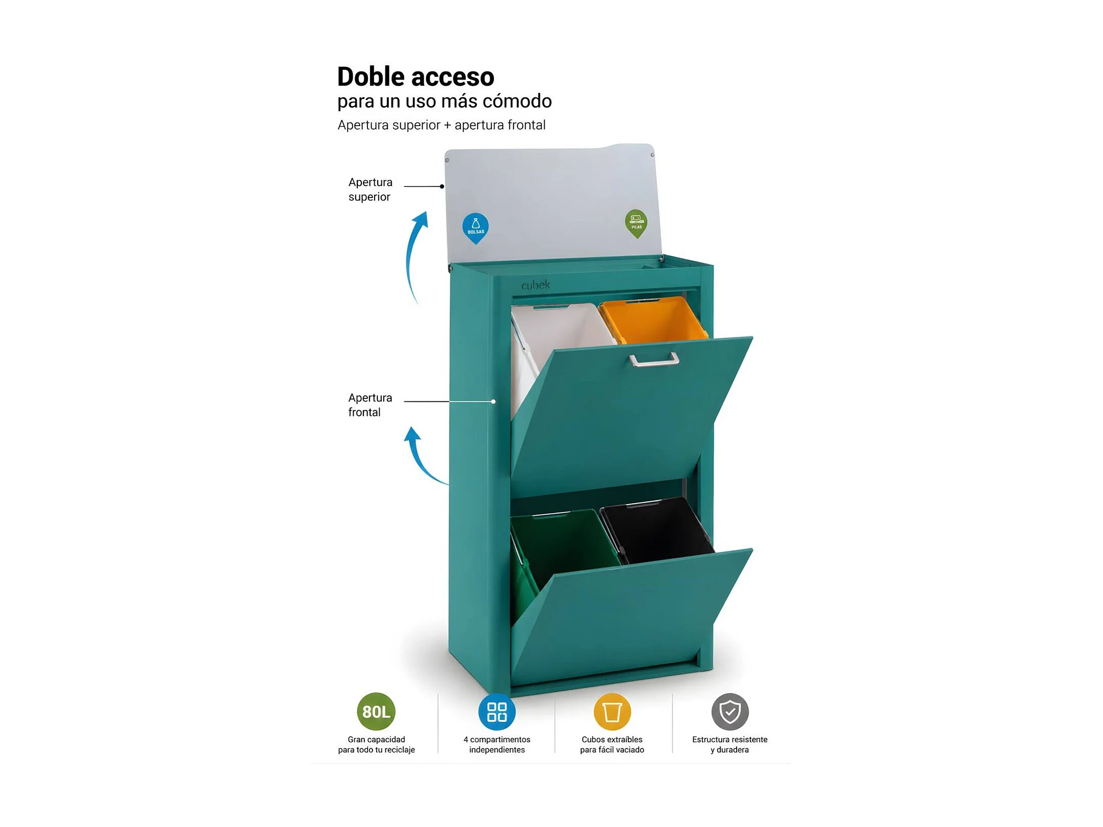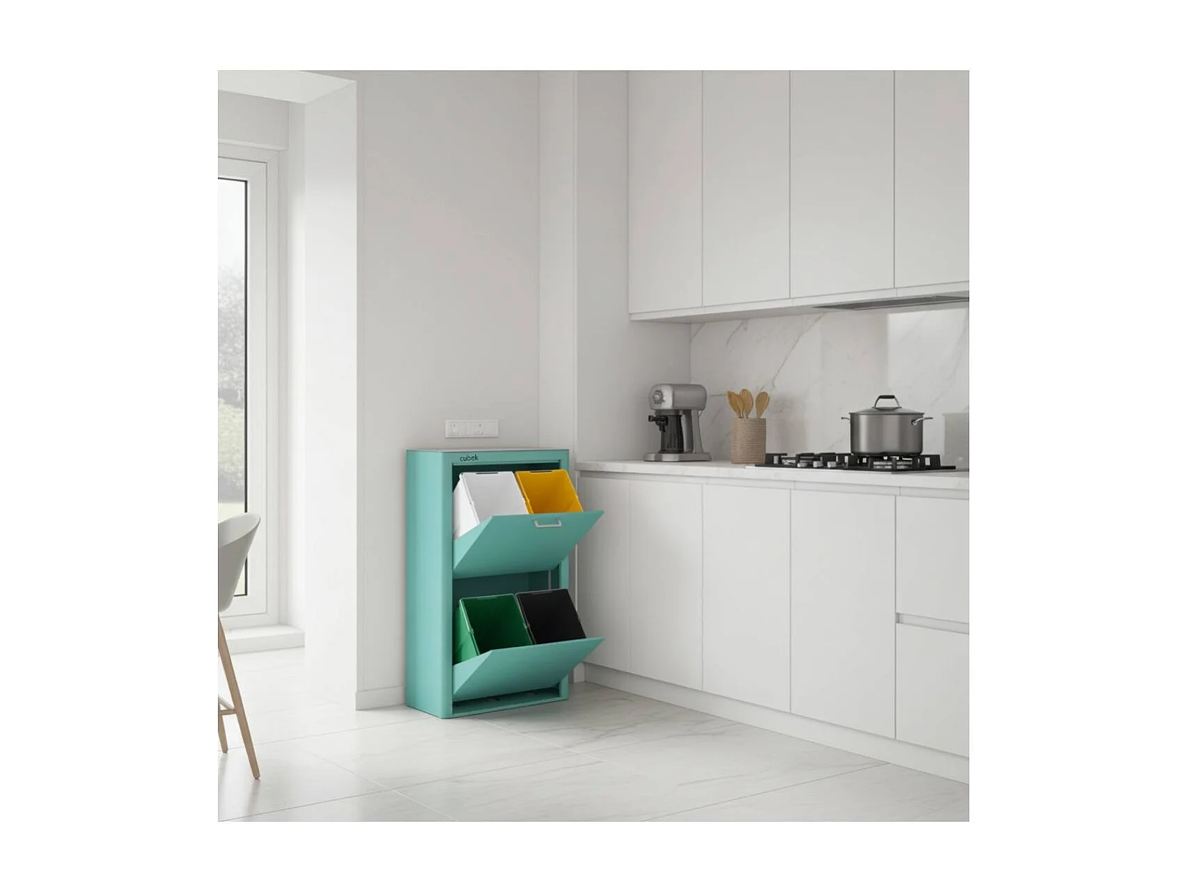 Küchenabfalleimer - Mülltrennungssystem mit 4 Fächern à 20 Litern - CUBEK