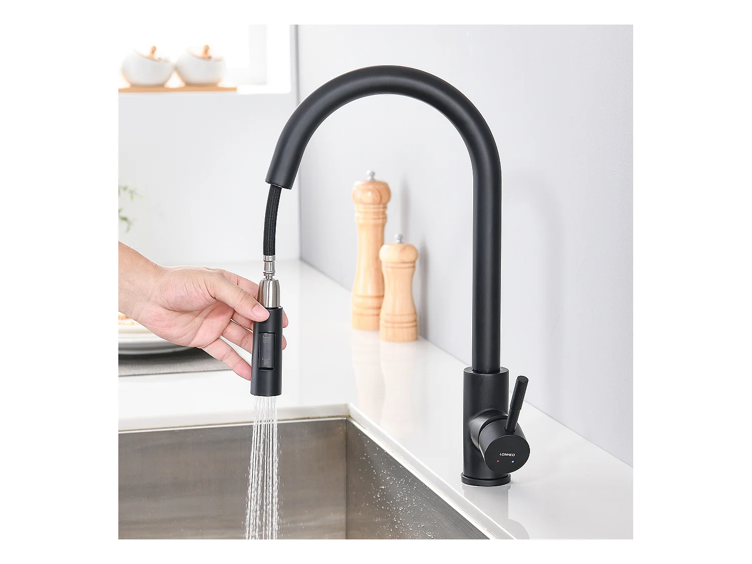 Küchenarmatur mit ausziehbarer Brause, mattschwarz, 360° drehbar, Küchenspüle Wasserhahn aus Edelstahl, 2 Funktionen, Küchenmischbatterie