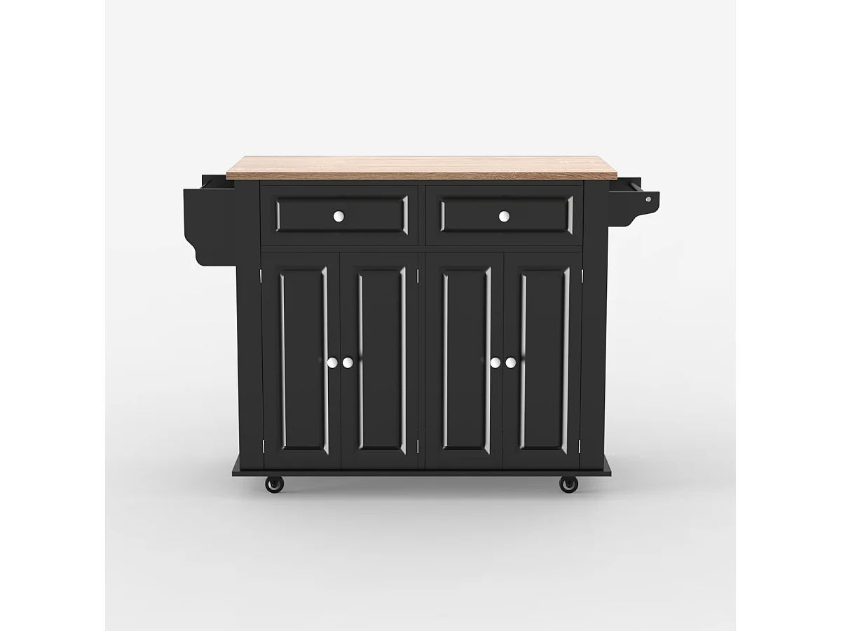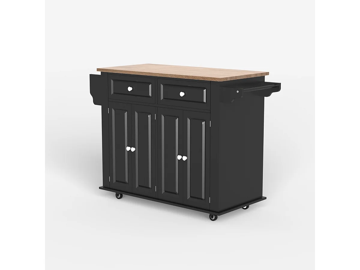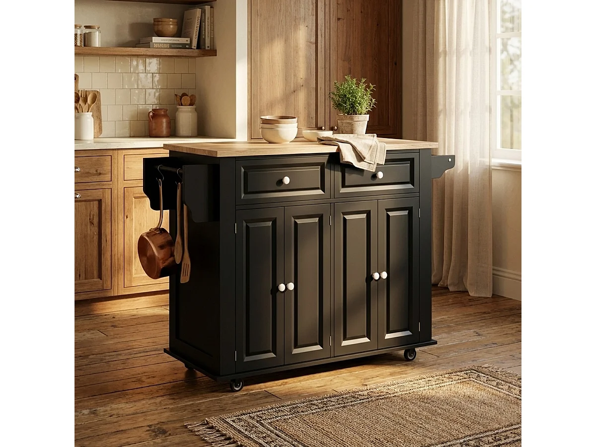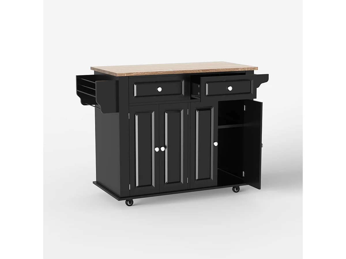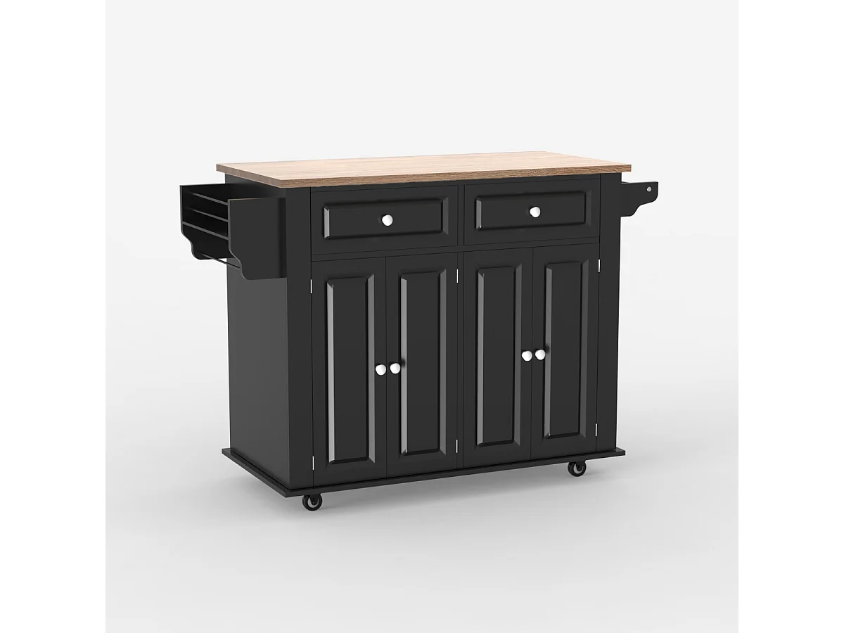 Kücheninsel mit Rollen 2 Schubladen 4 Türen und Gewürzregal Turchese - Schwarz