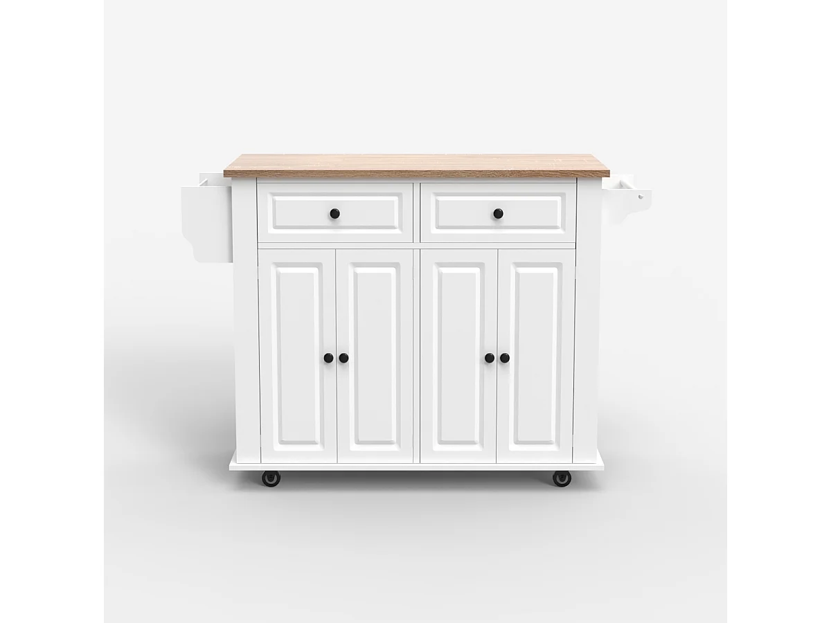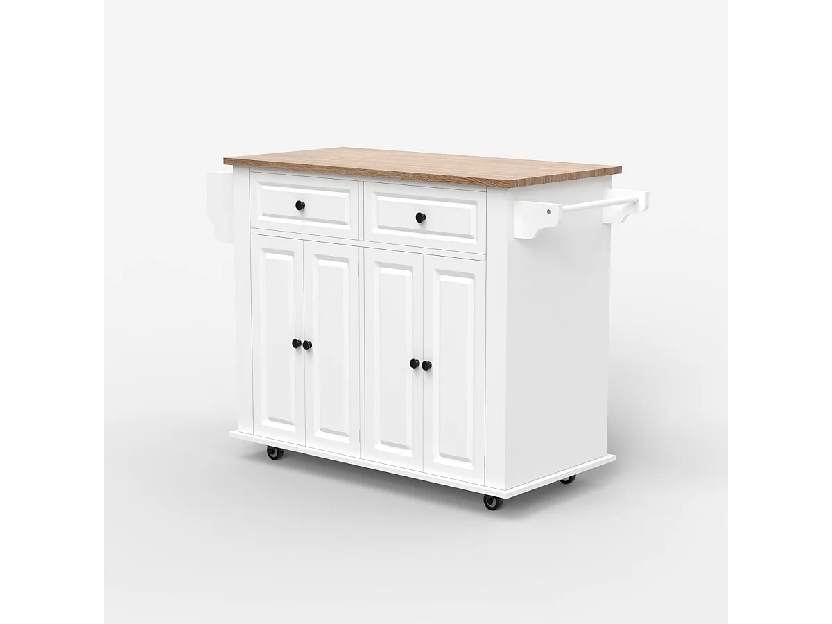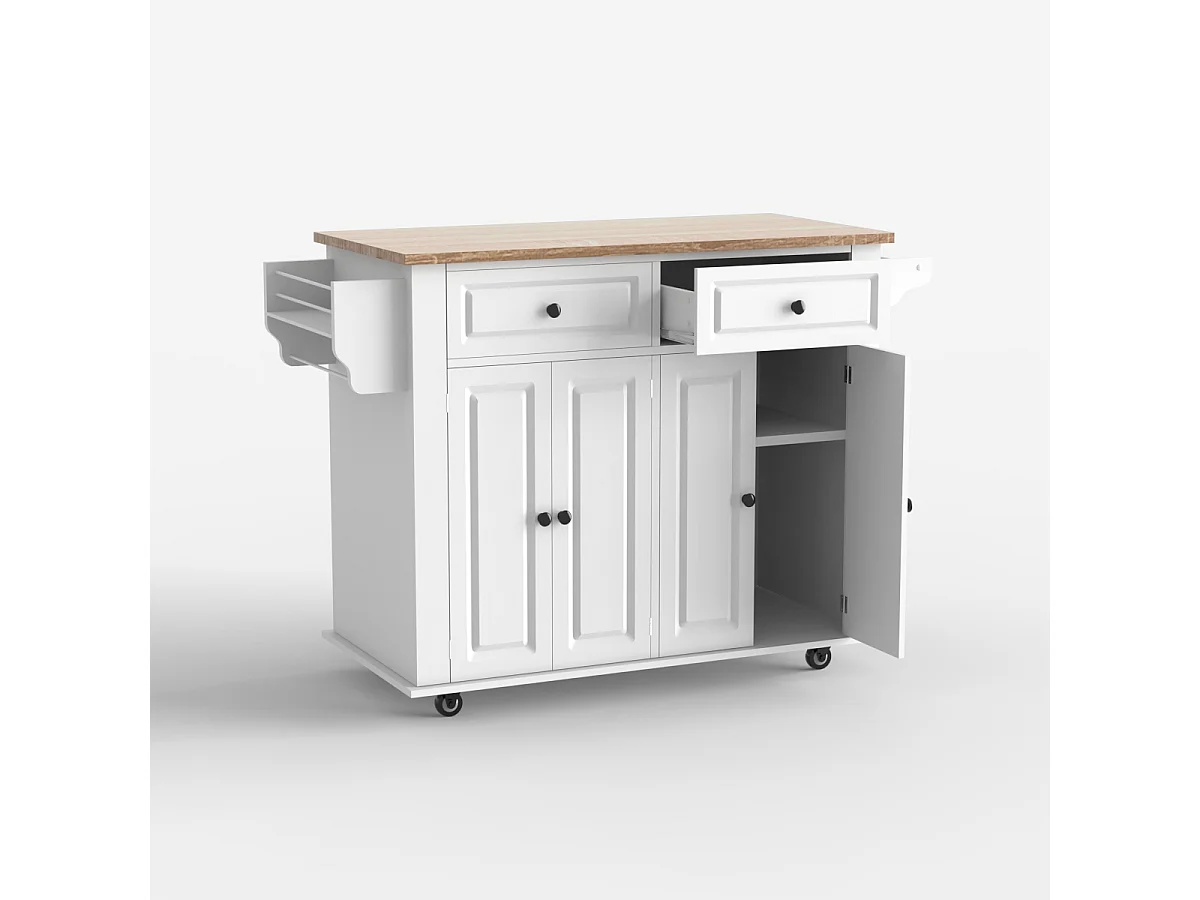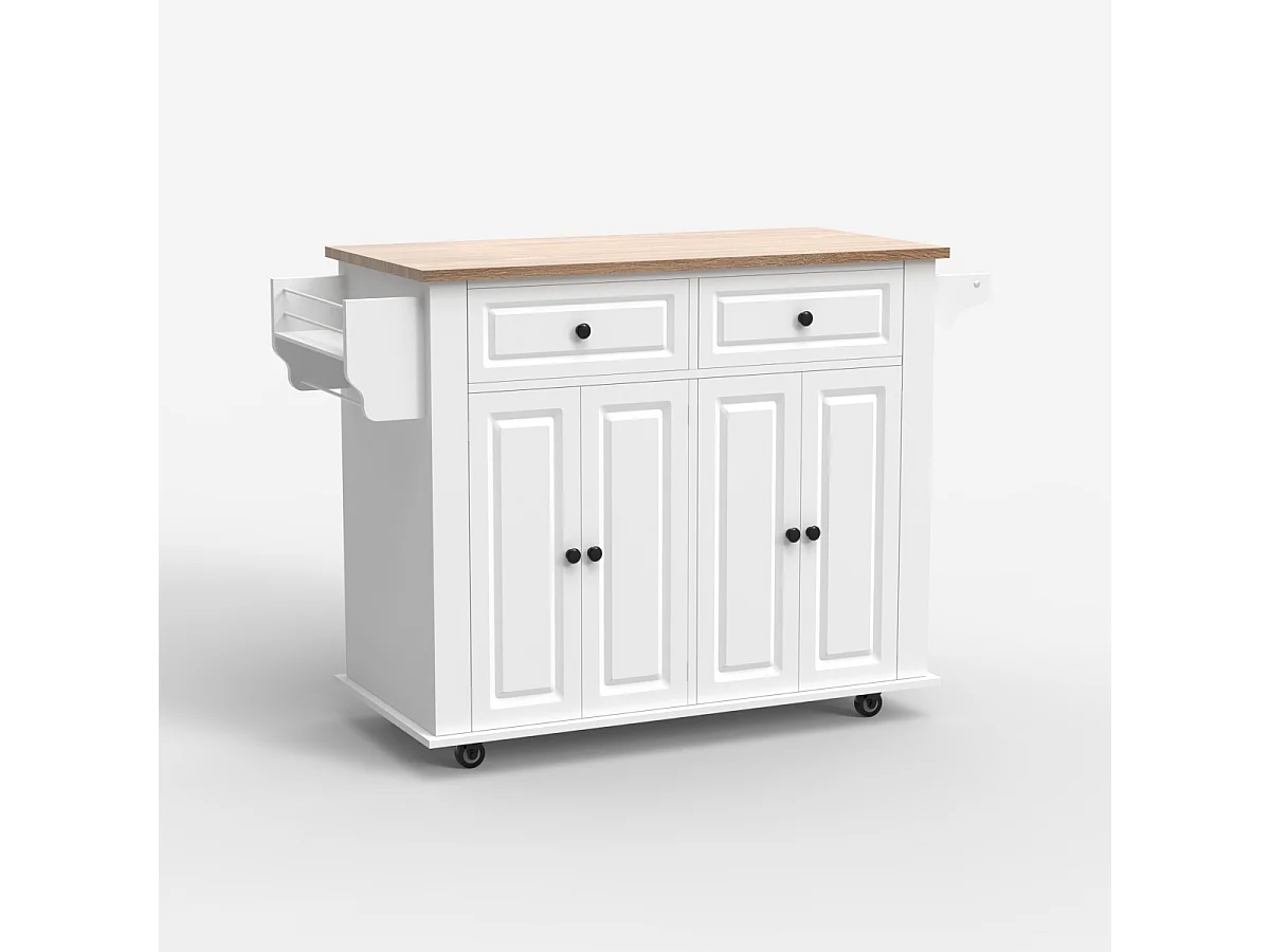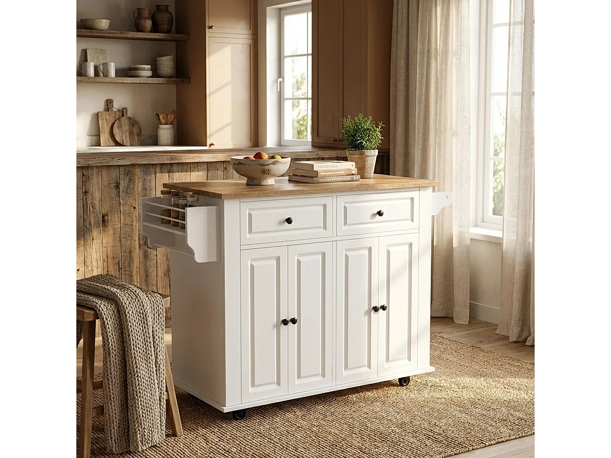 Kücheninsel mit Rollen 2 Schubladen 4 Türen und Gewürzregal Turchese - Weiß