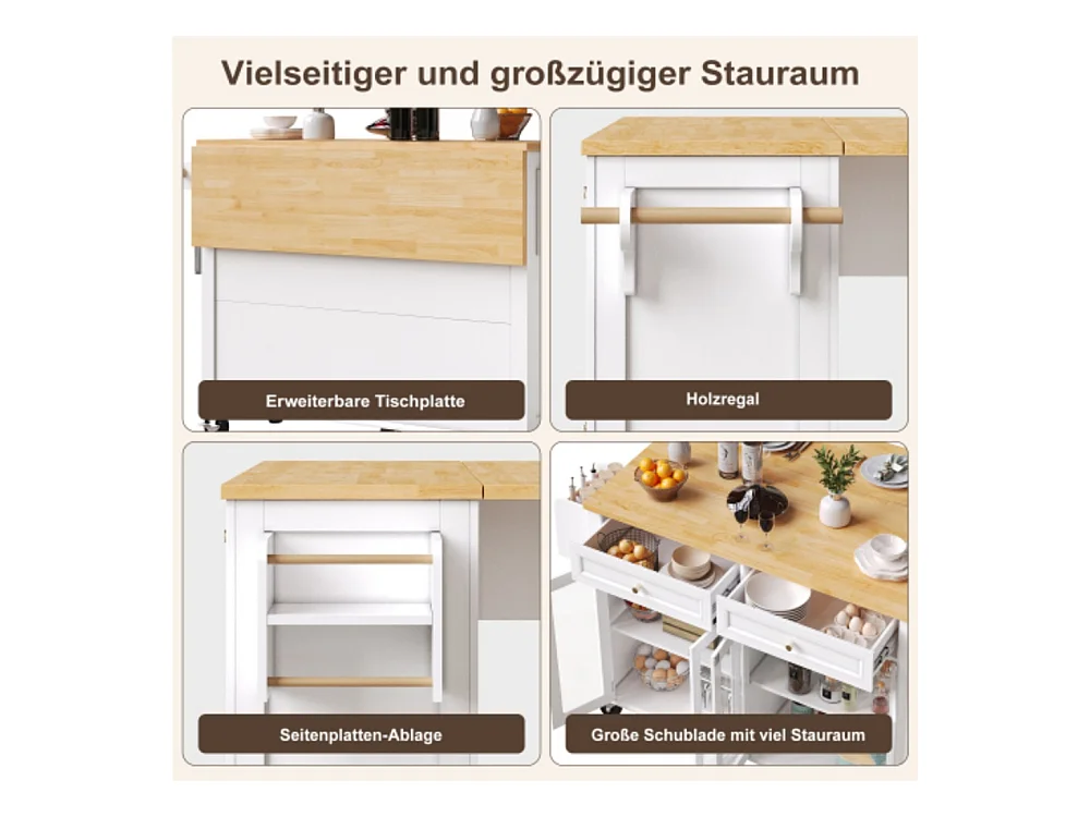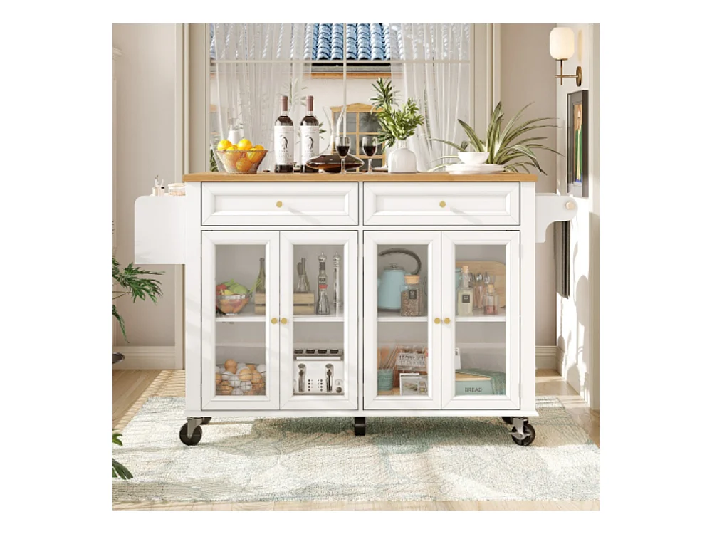 Kücheninsel mit Rollen & Glastüren, Multifunktionaler Servierwagen mit Stauraum, Mobiler Buffetschrank, Küchenwagen für Esszimmer