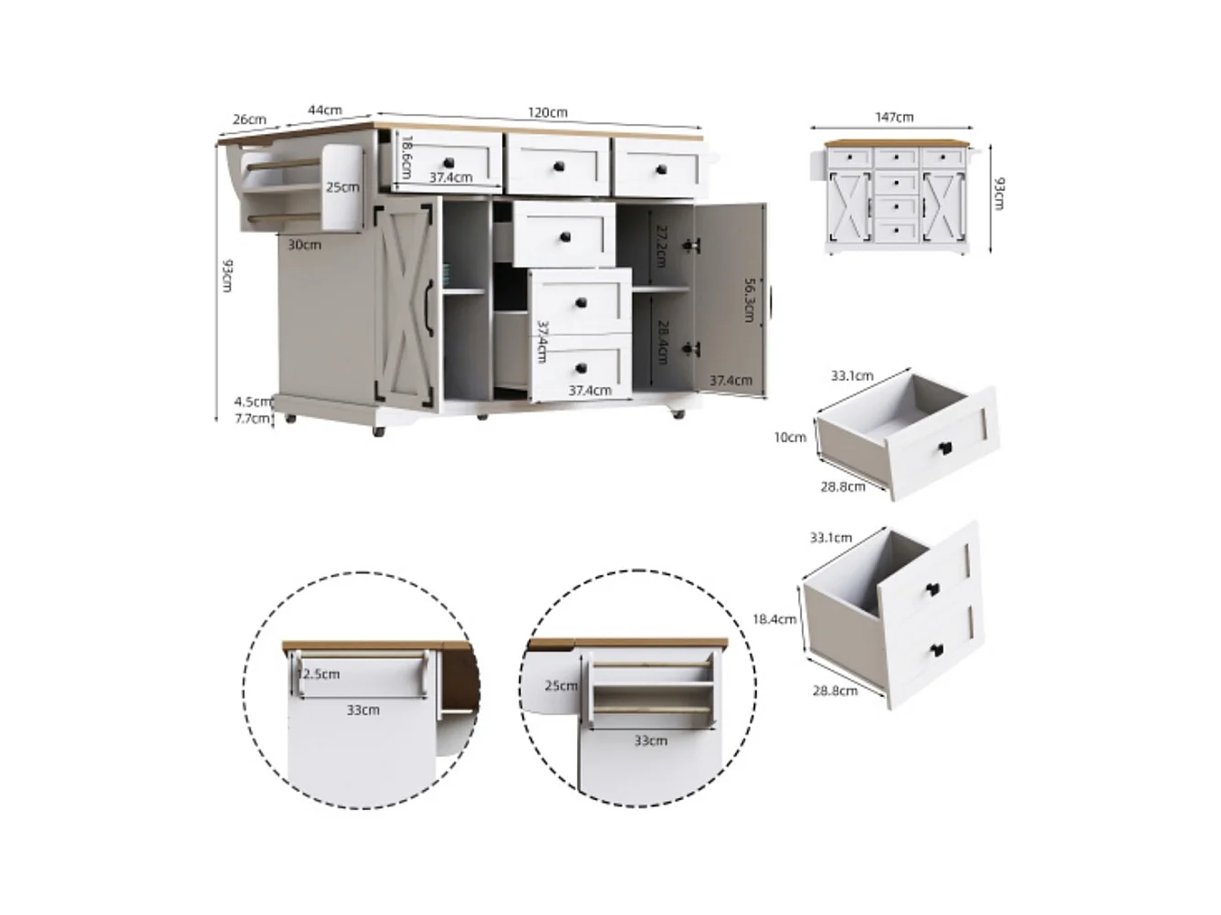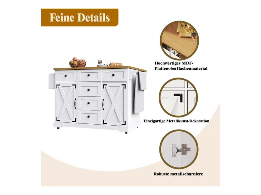 Kücheninsel, Servierwagen mit Stauraum, Mobiler Buffetschrank, Küchenwagen für Küche