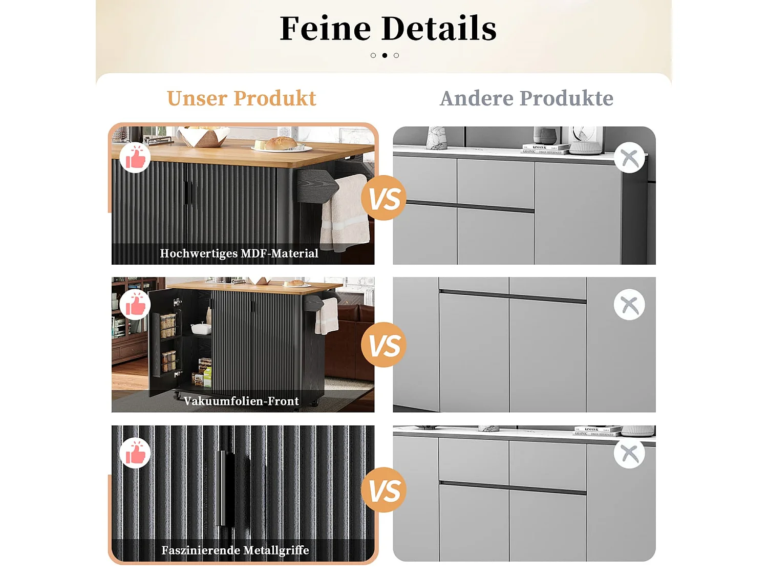 Kücheninsel,Speisewagen mit Holzmaserung,Buffet,Ausziehbarer Küchenwagen auf Rädern mit Handtuchhalter,Gewürzregal,Trennwände verstellbar