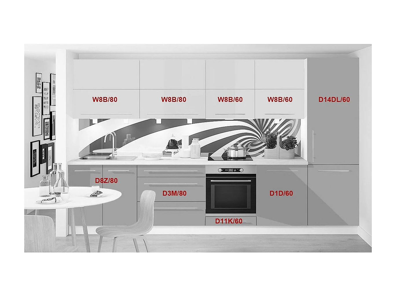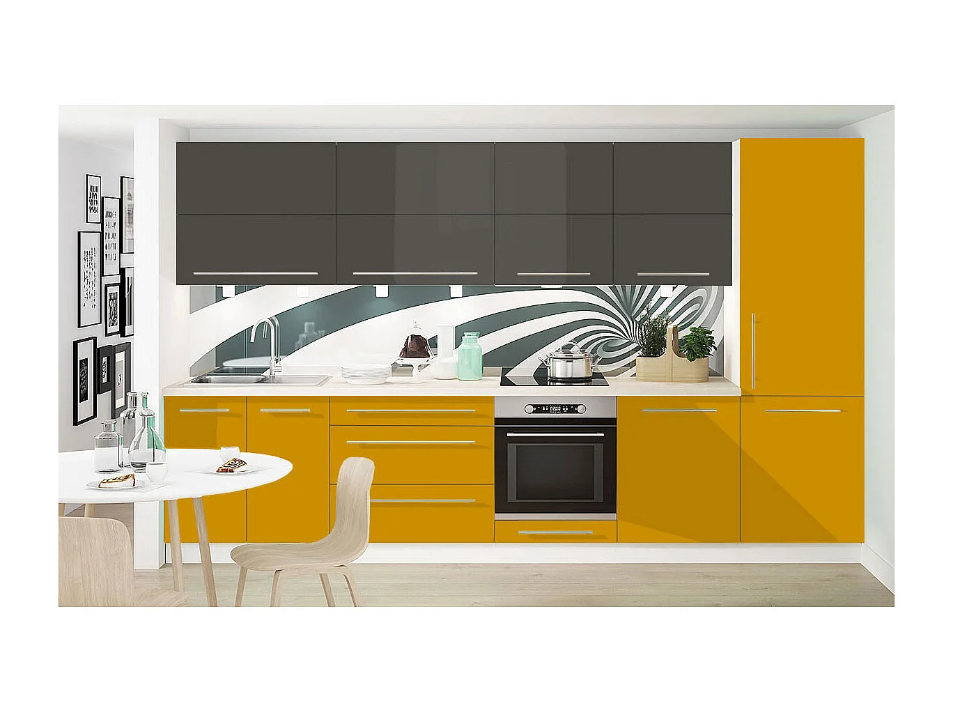 KÜCHENLEERBLOCK Brerra Honiggelb & Umbragrau Hochglanz / Weiß Matt 10-teilig