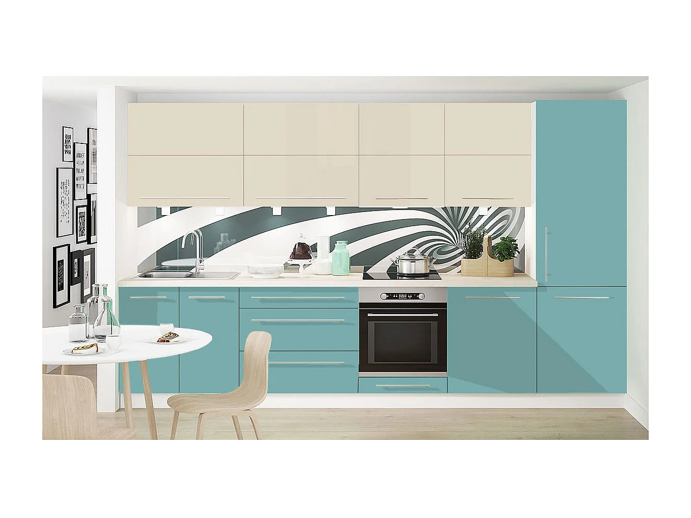KÜCHENLEERBLOCK Brerra Pastelltürkis & Perlweiß Hochglanz / Weiß Matt 10-teilig