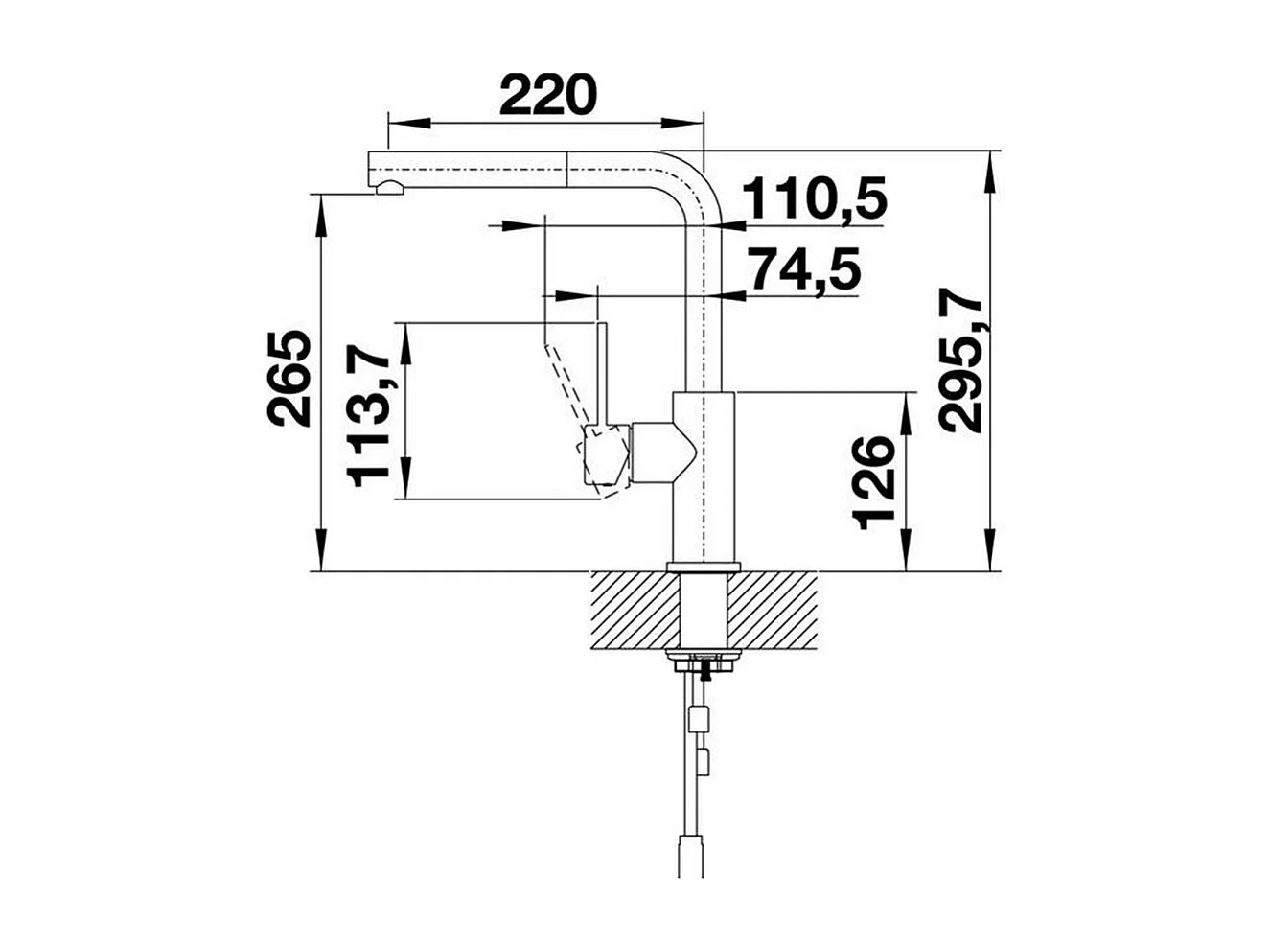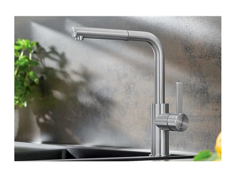 Küchenmischer aus gebürstetem Edelstahl BLANCO LANORA-S mit ausziehbarer Brause und 190° schwenkbarem Auslauf