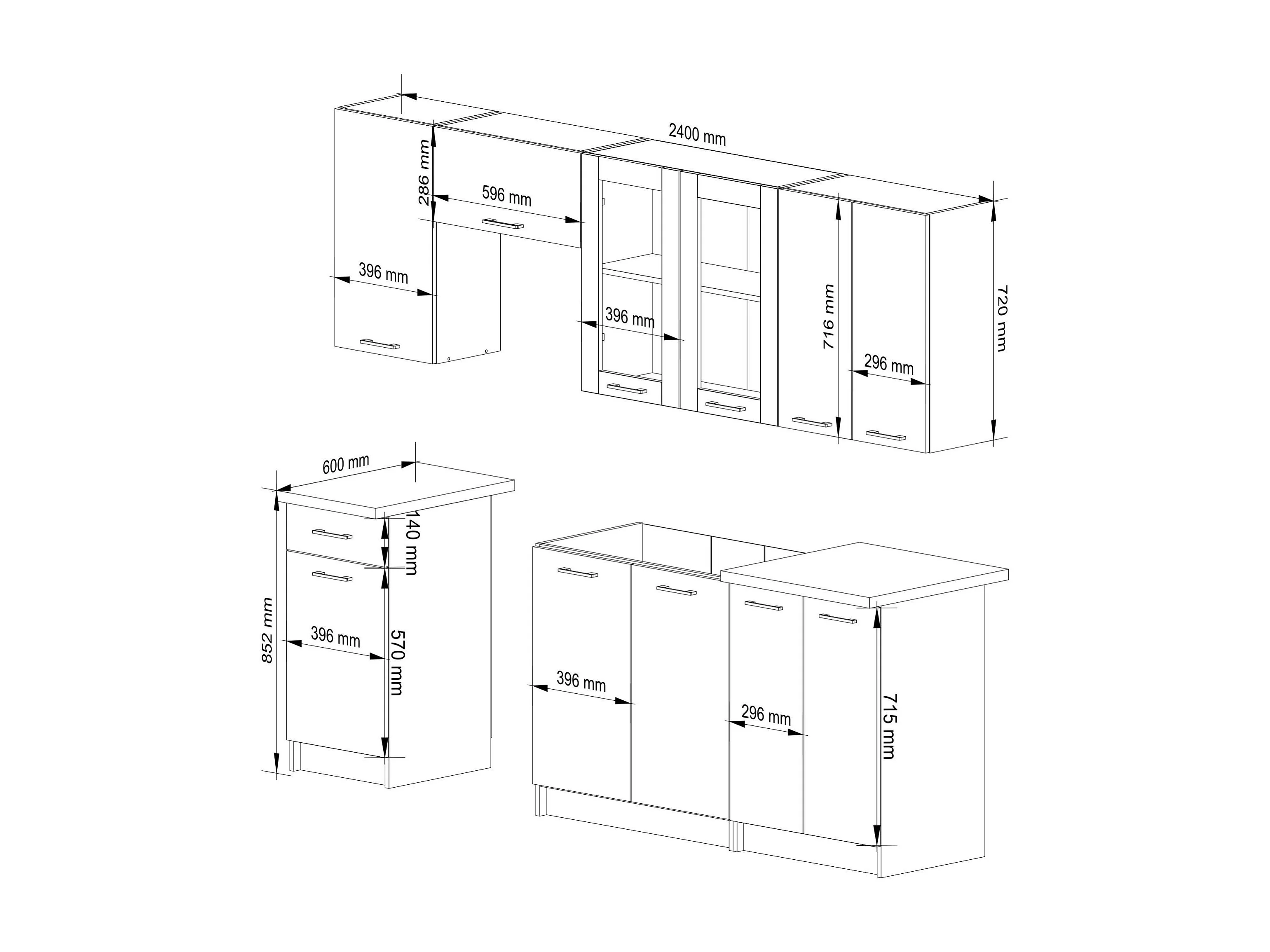 Küchenmöbel-Set OLIWIA 2.4m Modulares Weiß 240 cm 11 Türen 1 Schublade Front Beton B240xH203xT46 cm