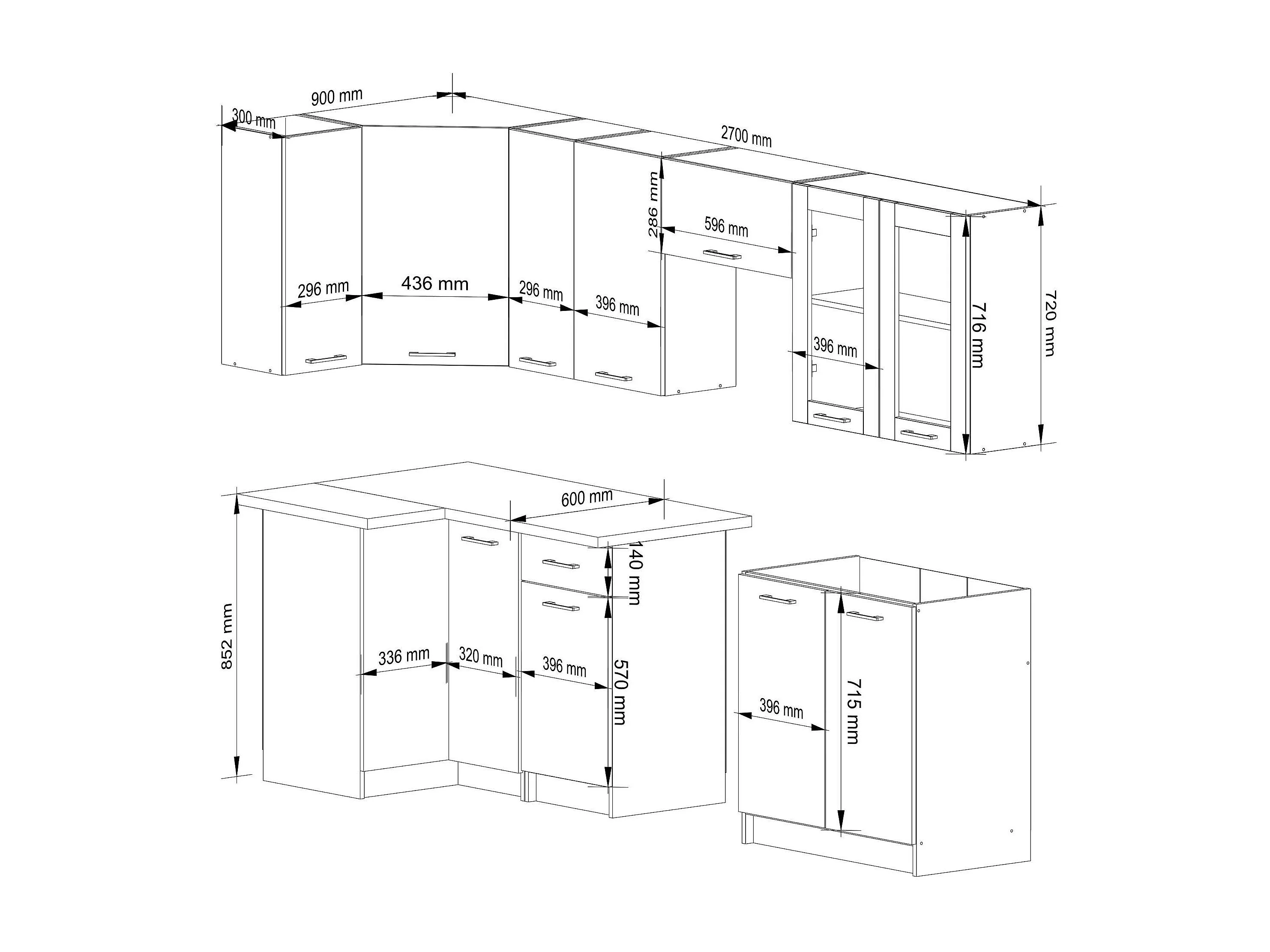 Küchenmöbel-Set OLIWIA 3.0m Modulares Weiß 300 cm 11 Türen 1 Schublade Front Beton B300xH203xT46 cm