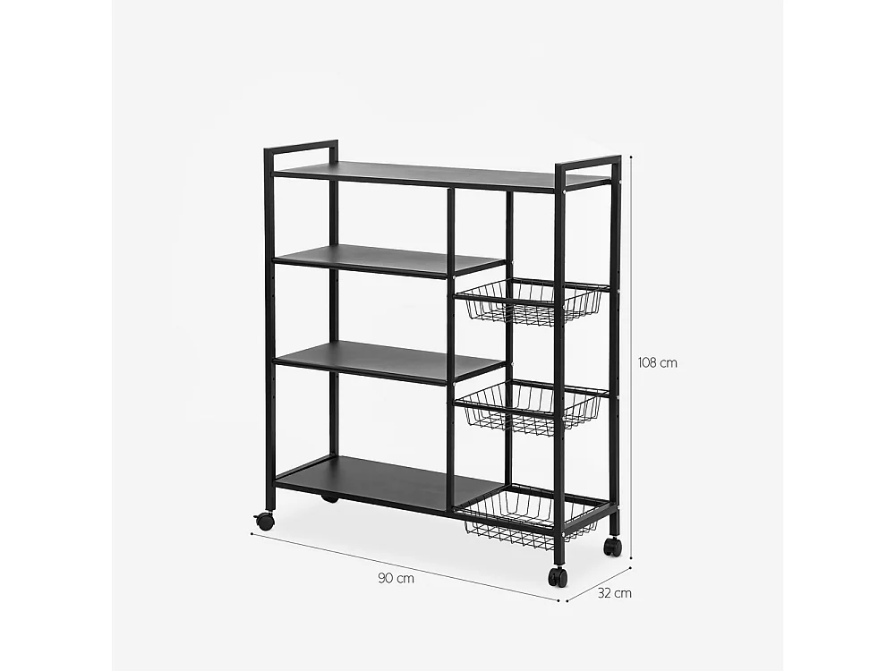 Küchenobstwagen mit Rädern 4 Ablagen 90x32x108cm Faris Plus