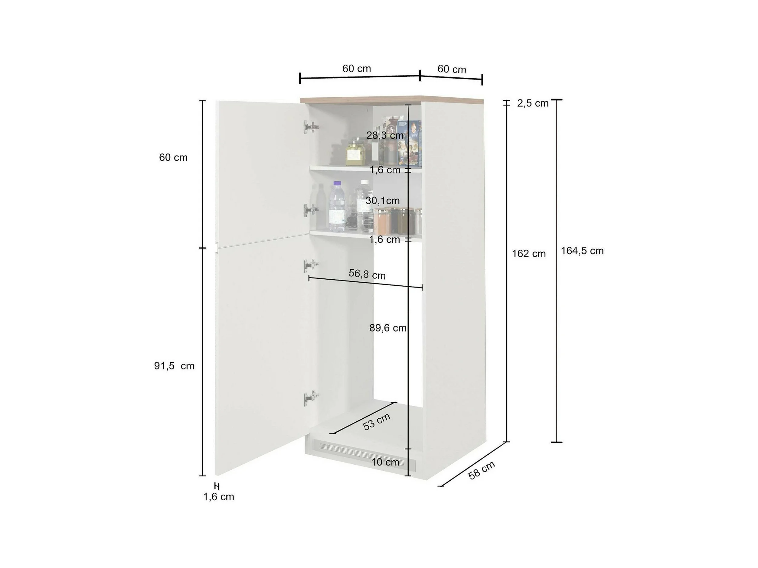Küchenschrank Dcasasol, Mehrzweckschrank, Küchenzeile Schrank, Multifunktionales Kühlregal, 100 % Made in Italy, 60 x 60 x 165 cm, glänzendes Weiß und Schiefer