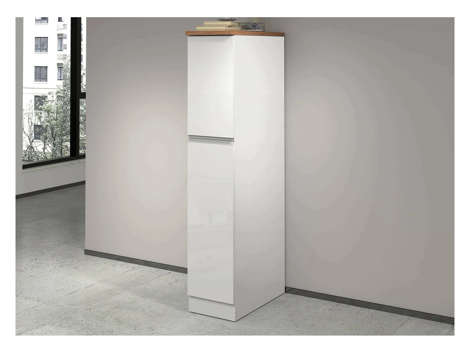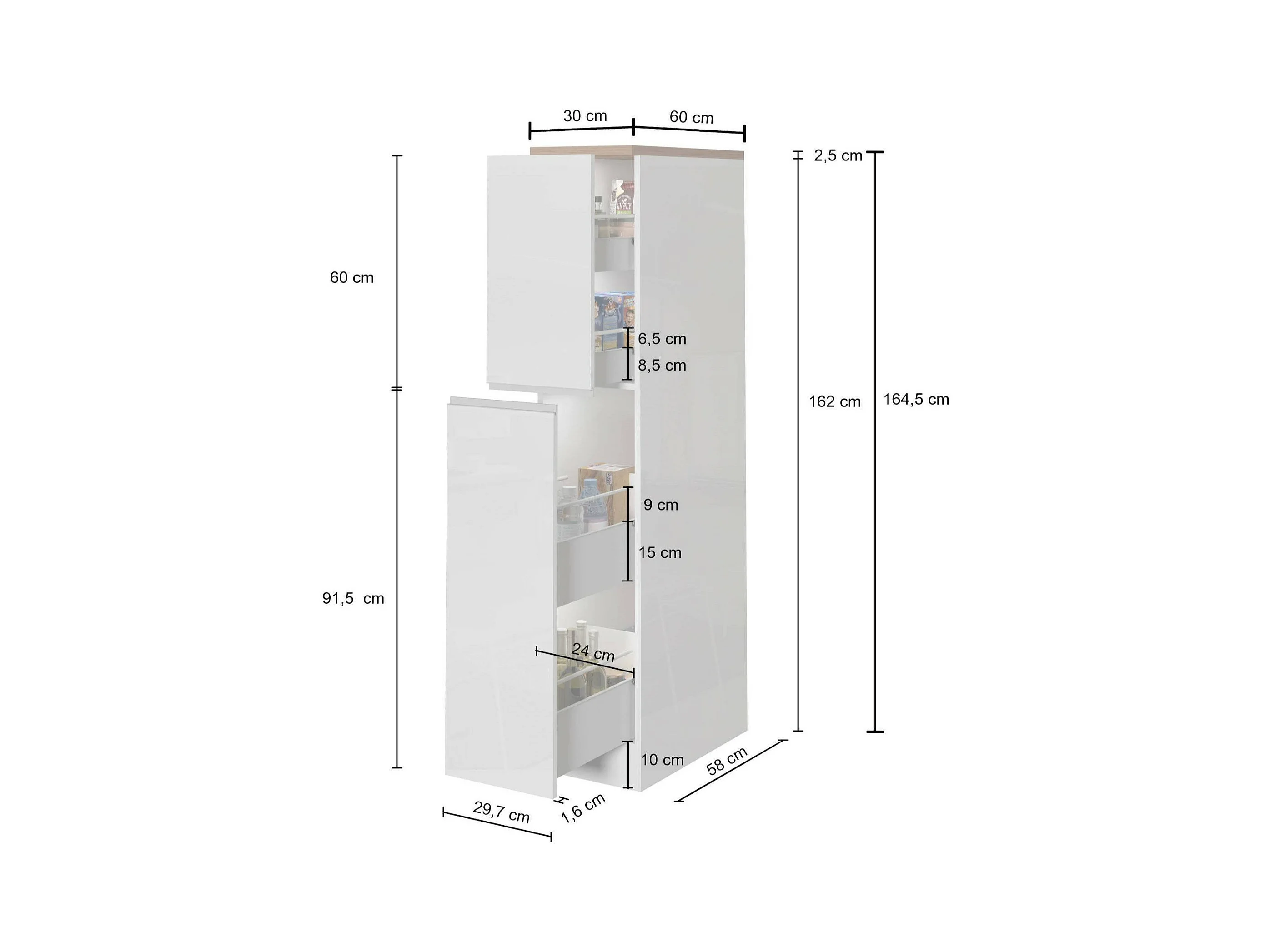 Küchenschrank Dcasiragh, Mehrzweckschrank, Küchenzeile Schrank, Multifunktionales Kühlregal, 100 % Made in Italy, 30 x 60 x 165 cm, glänzendes Weiß und Eiche