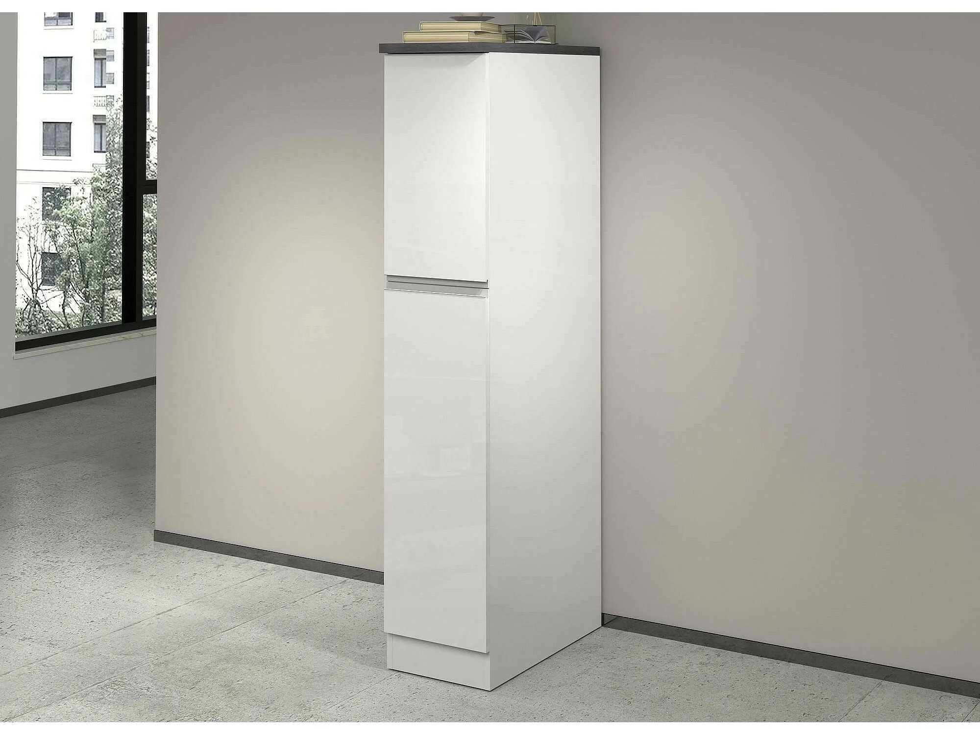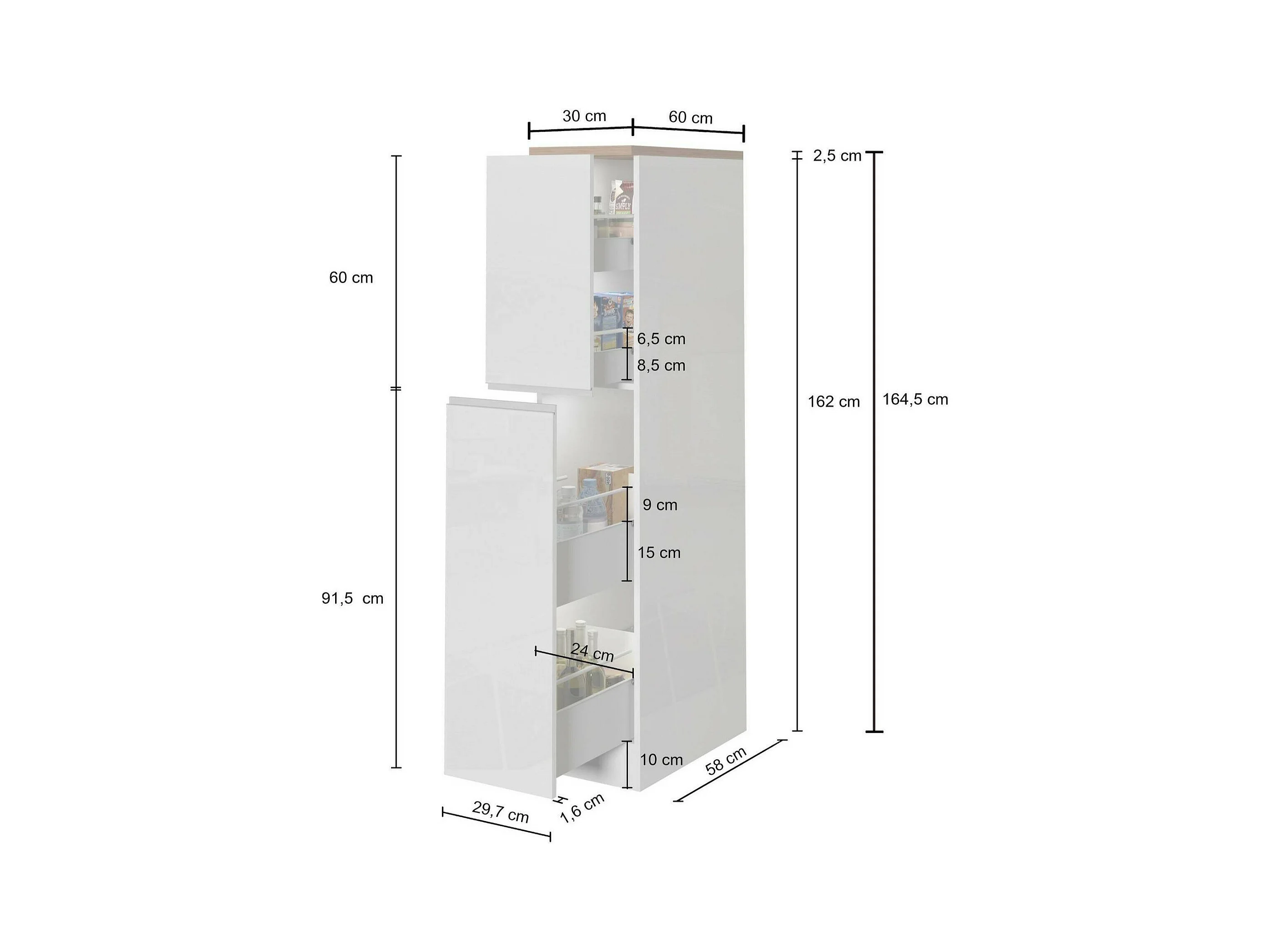 Küchenschrank Dcasiragh, Mehrzweckschrank, Küchenzeile Schrank, Multifunktionales Kühlregal, 100 % Made in Italy, 30 x 60 x 165 cm, glänzendes Weiß und Schiefer