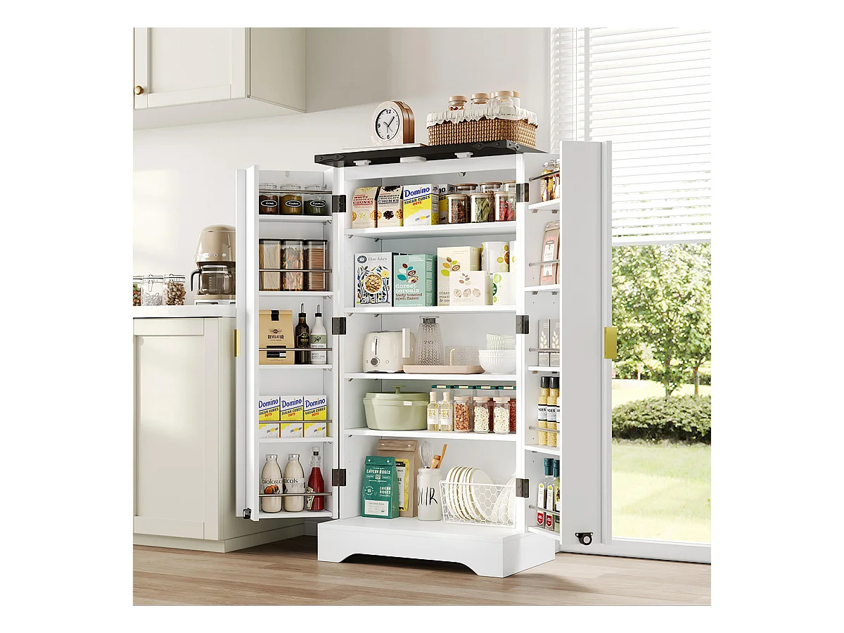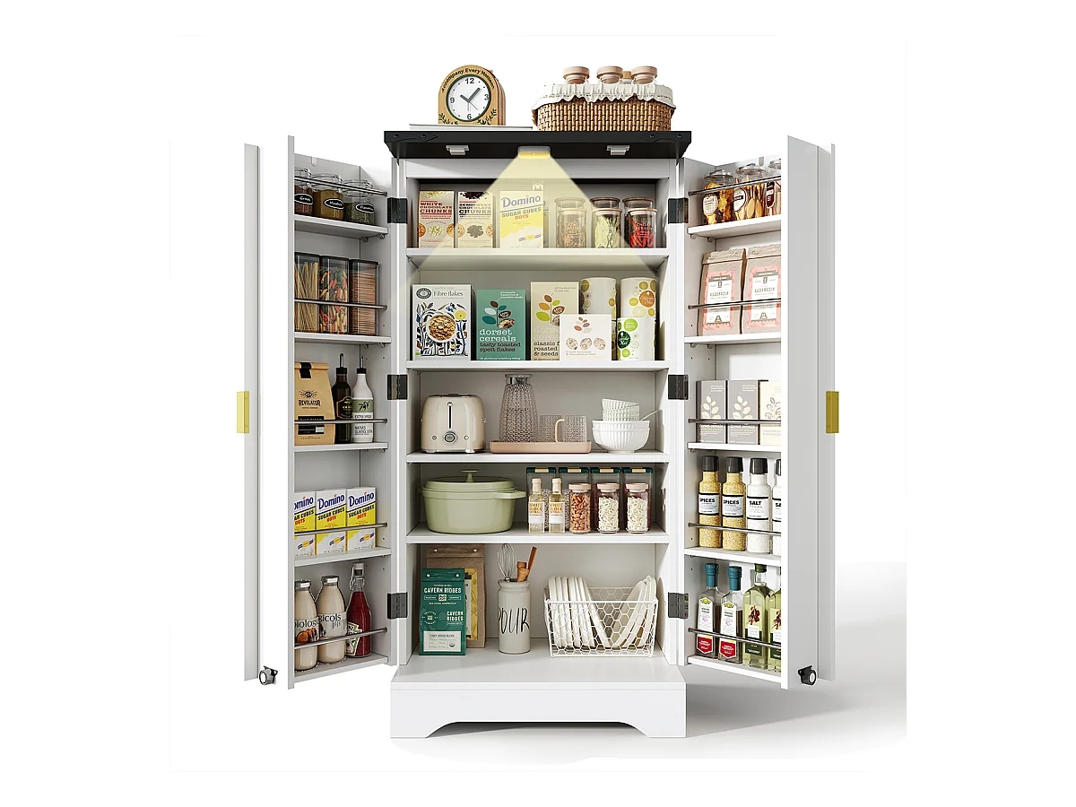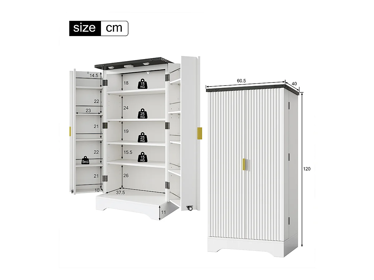 Küchenschrank mit LED-Sensorlicht und Gewürzregal Buffetschrank Sideboard 120 x 60,5 x 40 cm Weiß