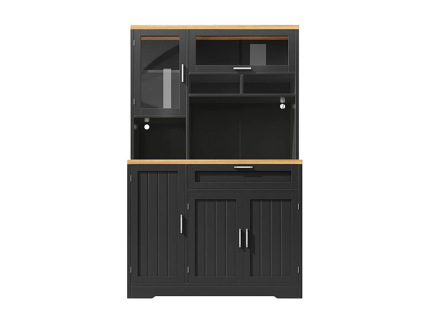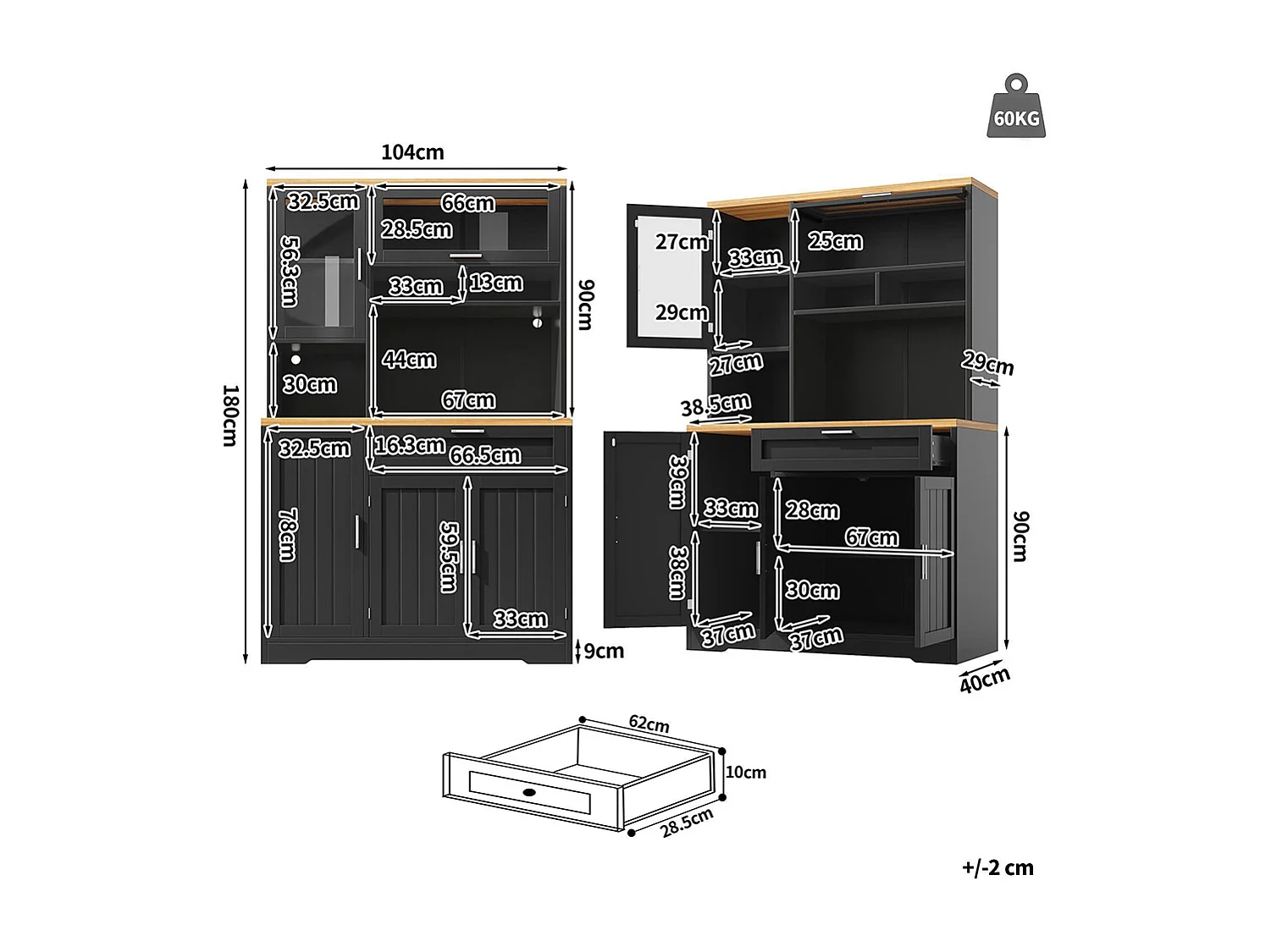 Küchenschrank, Oberschrank/Vitrine mit LED-Beleuchtung, 104x40x180 cm, schwarz