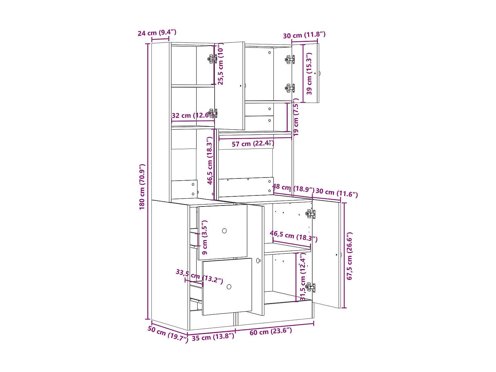 Küchenschrank Weiß 95x50x180 cm Holzwerkstoff