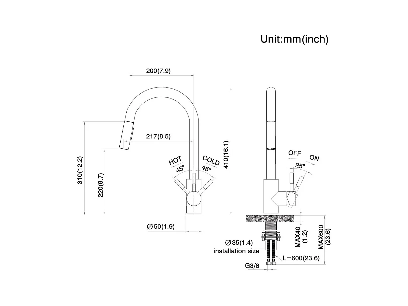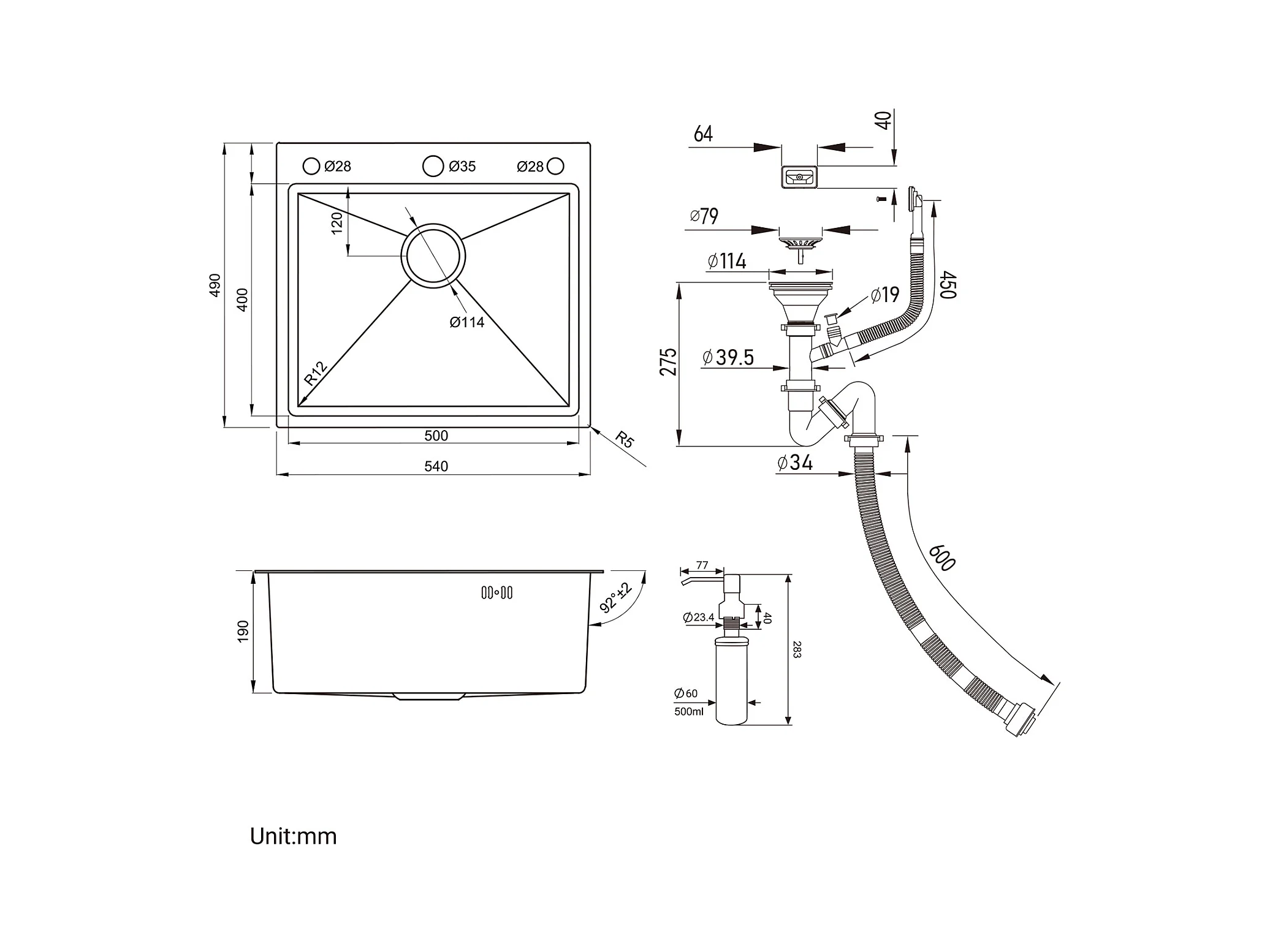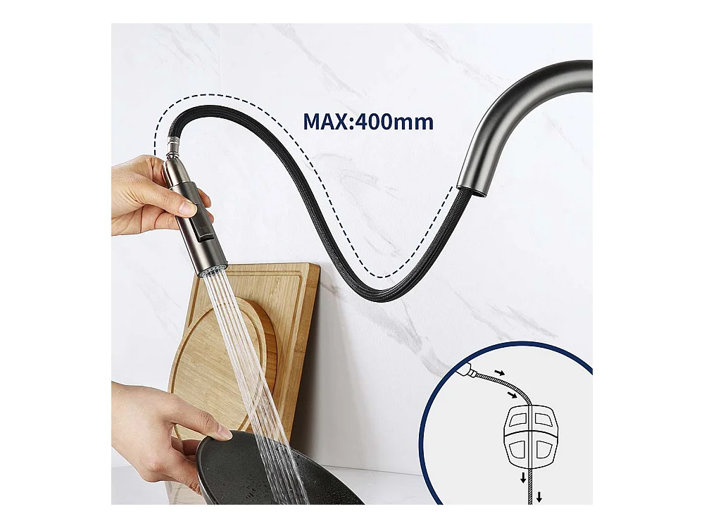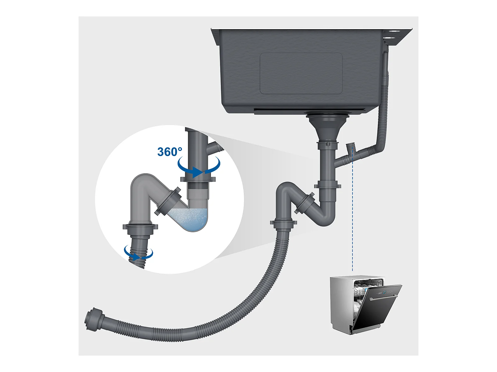 Küchenspüle 54*49*20 CM, Einbauspüle mit Seifenspender, Silber + Küchenmischbatterie mit ausziehbarer Brause Dunkelgrau