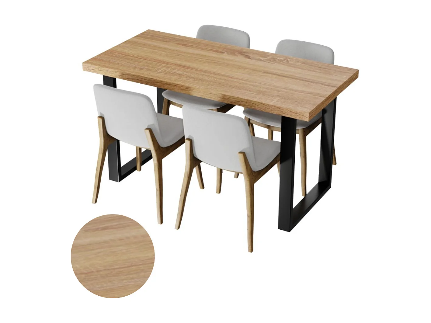 Küchentisch für Esszimmer Loft in Sonoma-Eiche mit schwarzen Beinen.