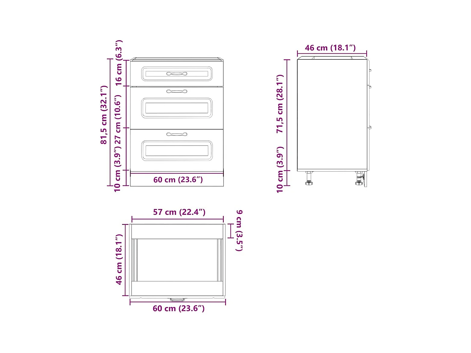 Küchenunterschrank Kalmar Betongrau Holzwerkstoff