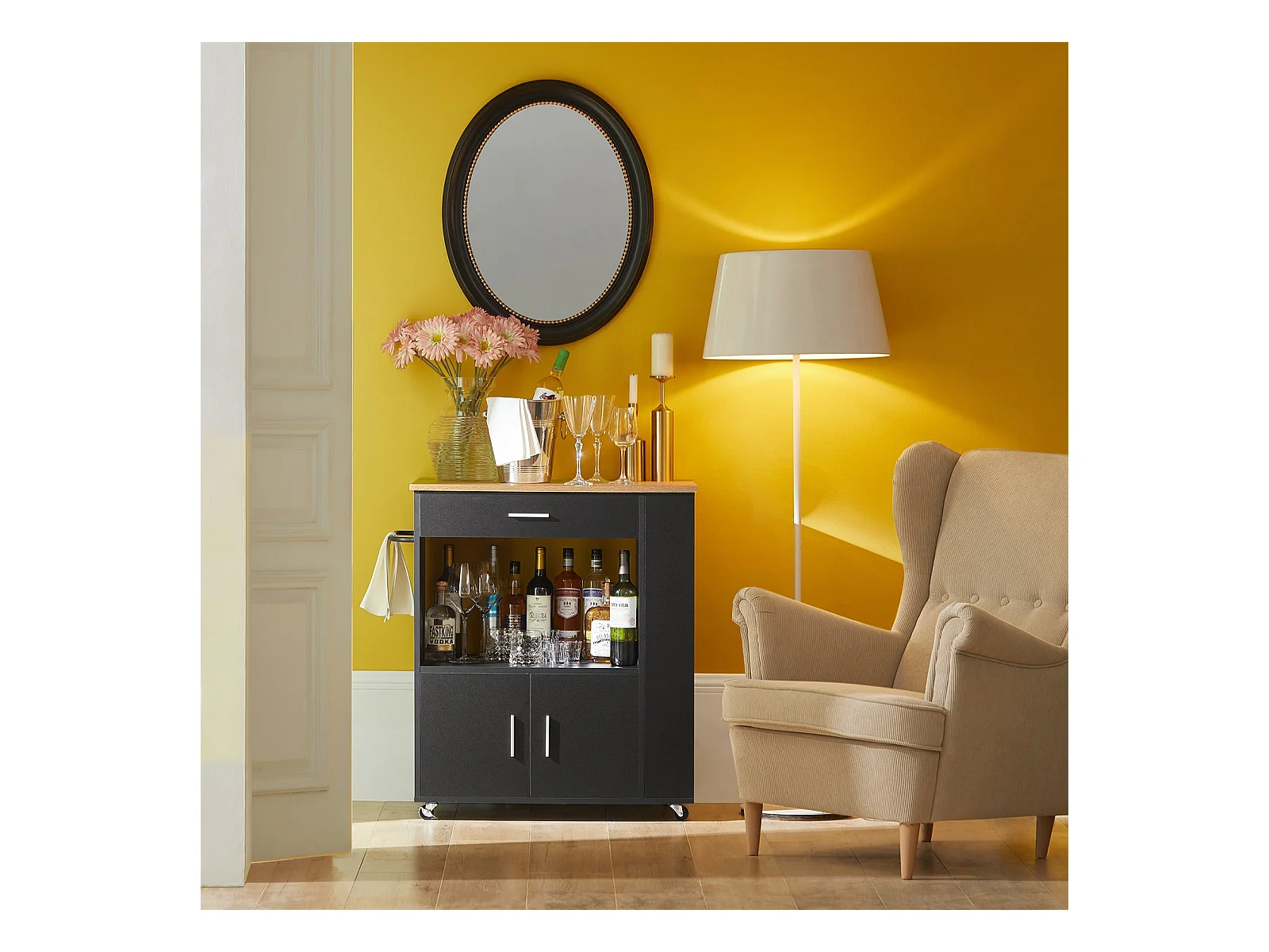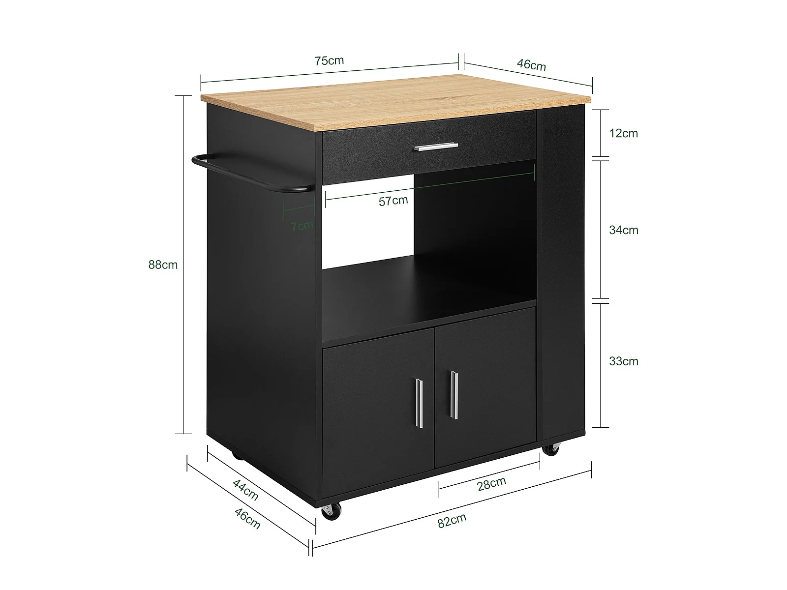 Küchenwagen FKW113-SCH 82 x 88 x 46 cm Schwarz