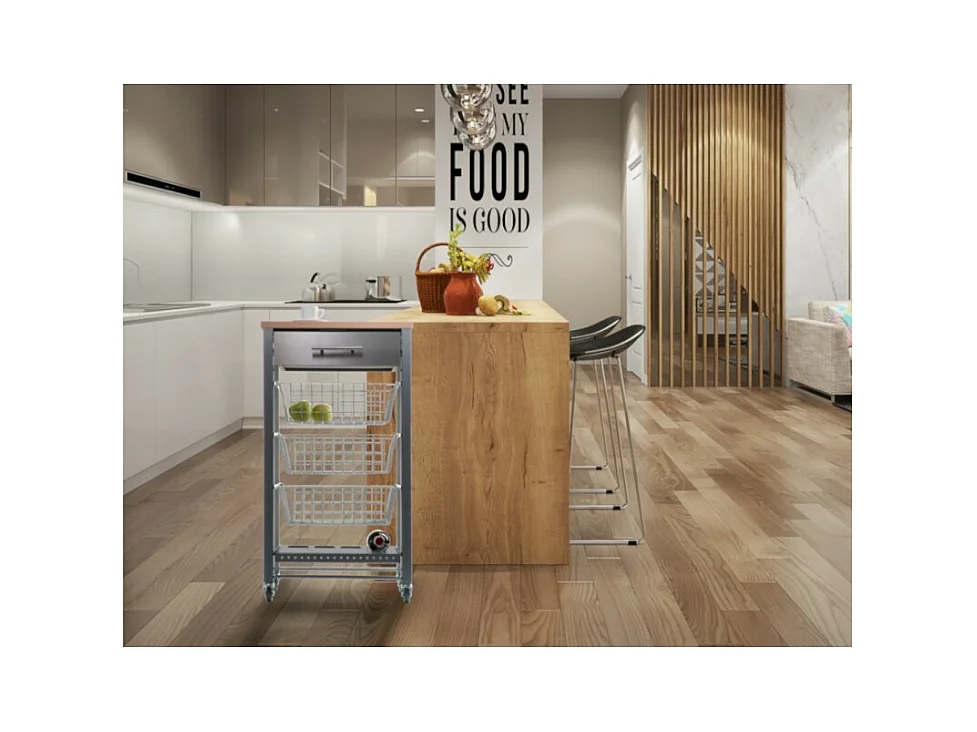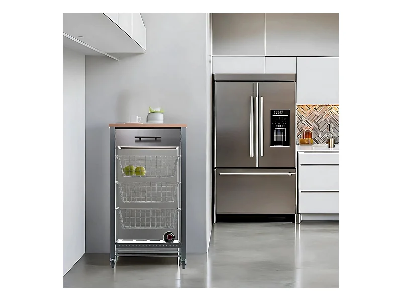 Küchenwagen, Küchentrolley - Grau, Edelstahl, Buche - 88,5*48*33cm. - APRIL
