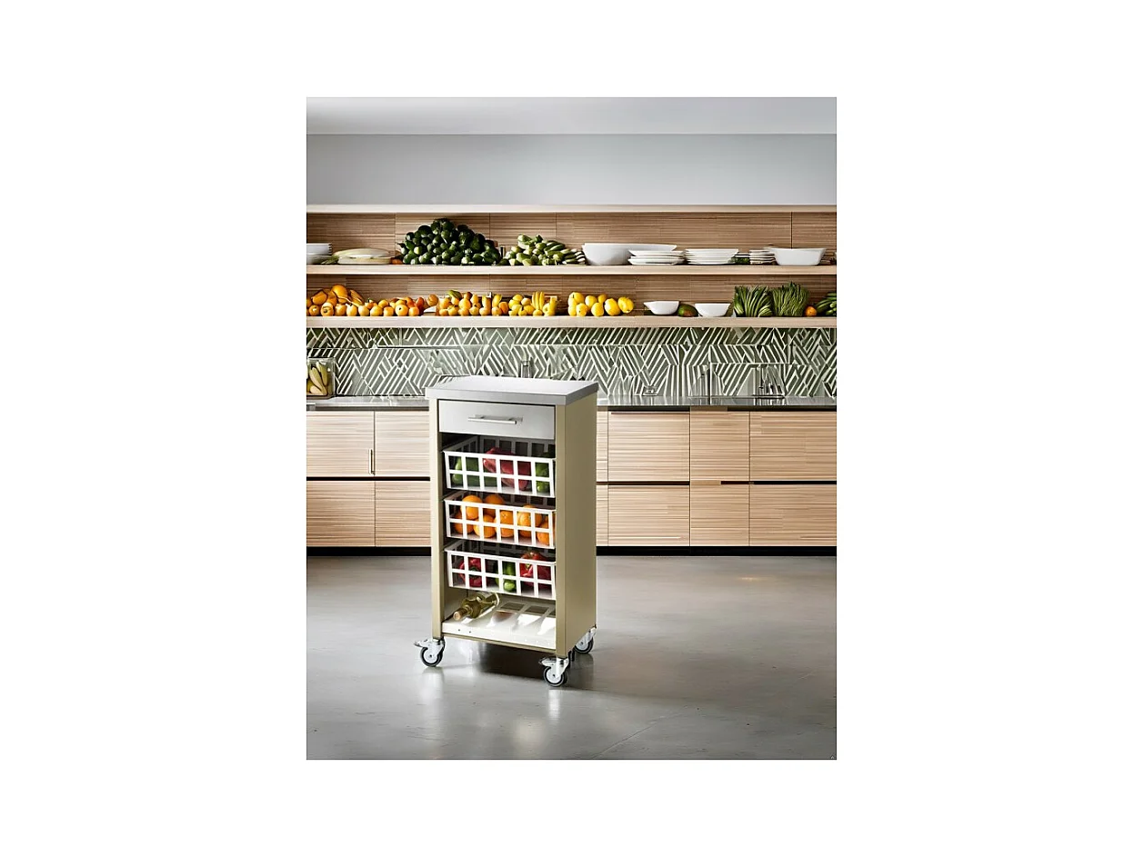 Küchenwagen mit Arbeitsplatte aus Edelstahl - Olivgrün, Edelstahl - 93*48*34cm - MOHER