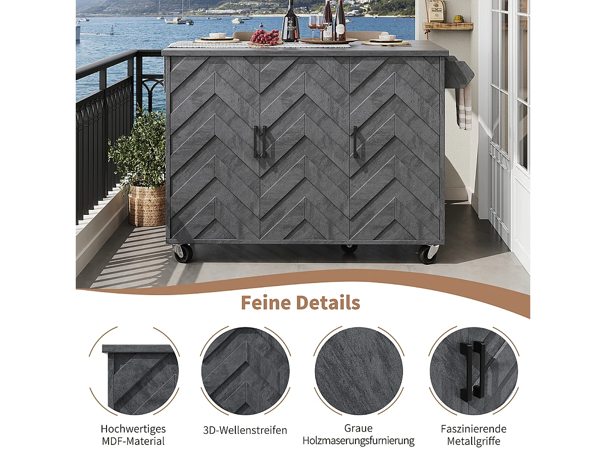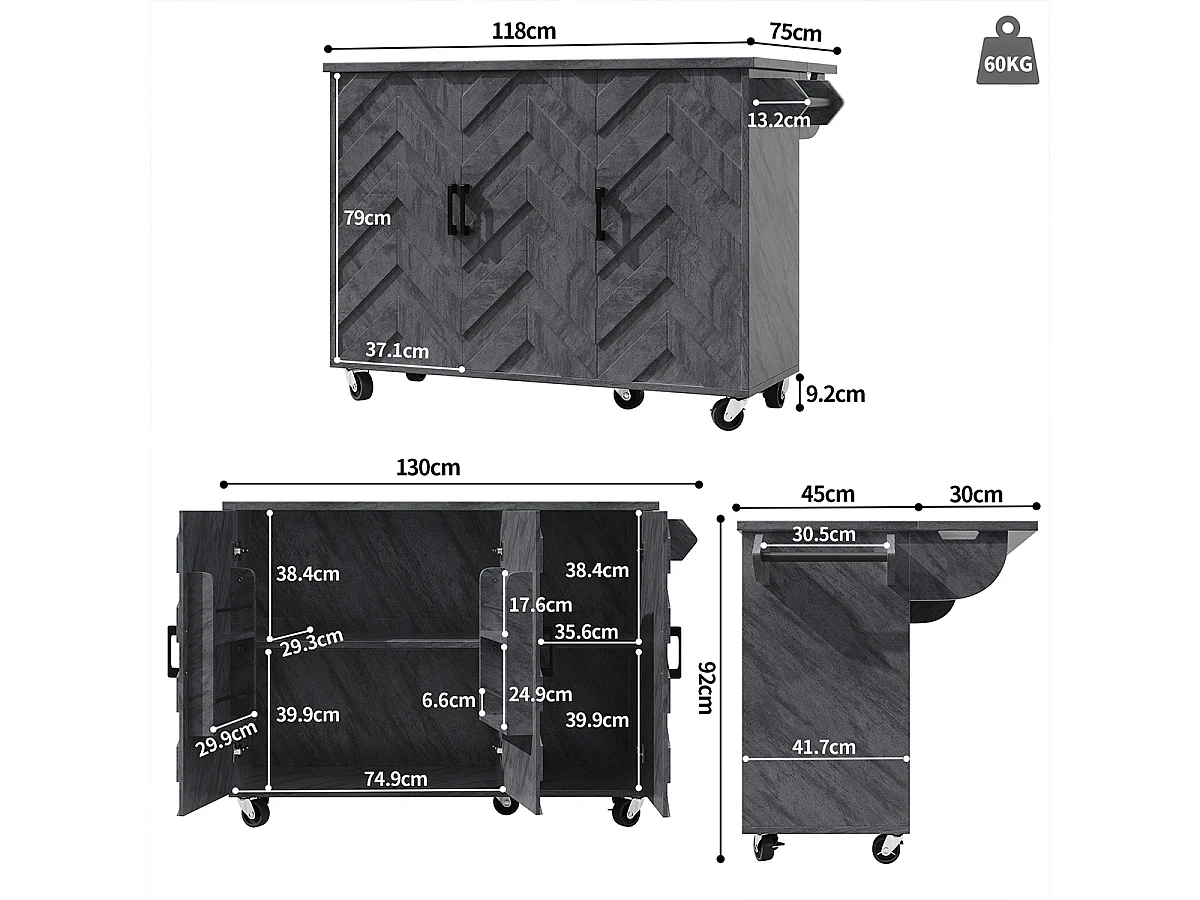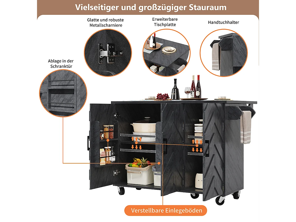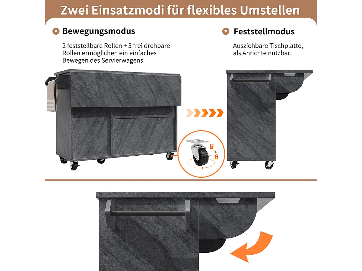 Küchenwagen mit Rädern Handtuchhalter und Türablage Kücheninsel Küchenschrank 118*45(75)*92cm