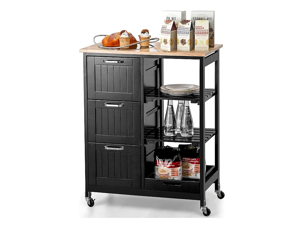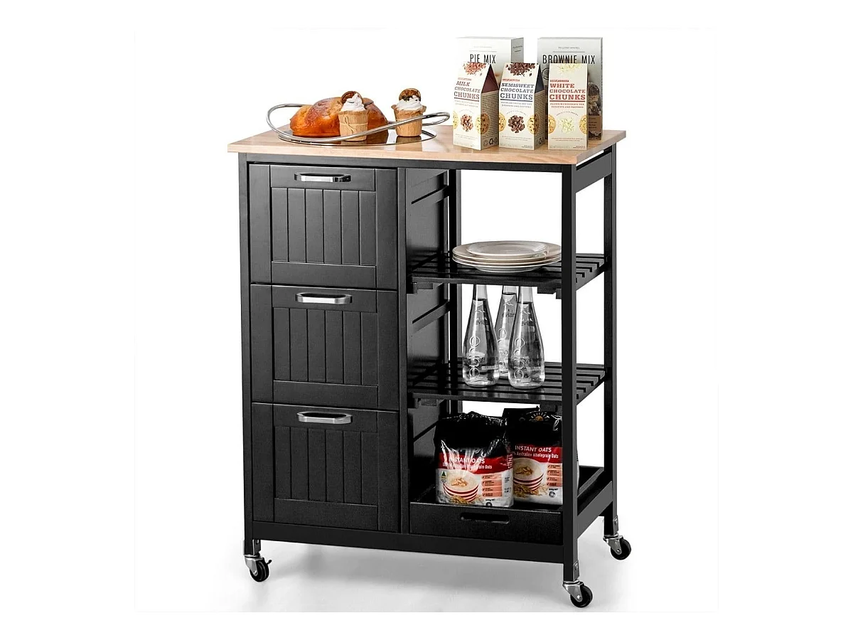 Mehrzweckwagen Kücheninsel auf Rädern mit Stauraum 67 x 37 x 84 cm Schwarz