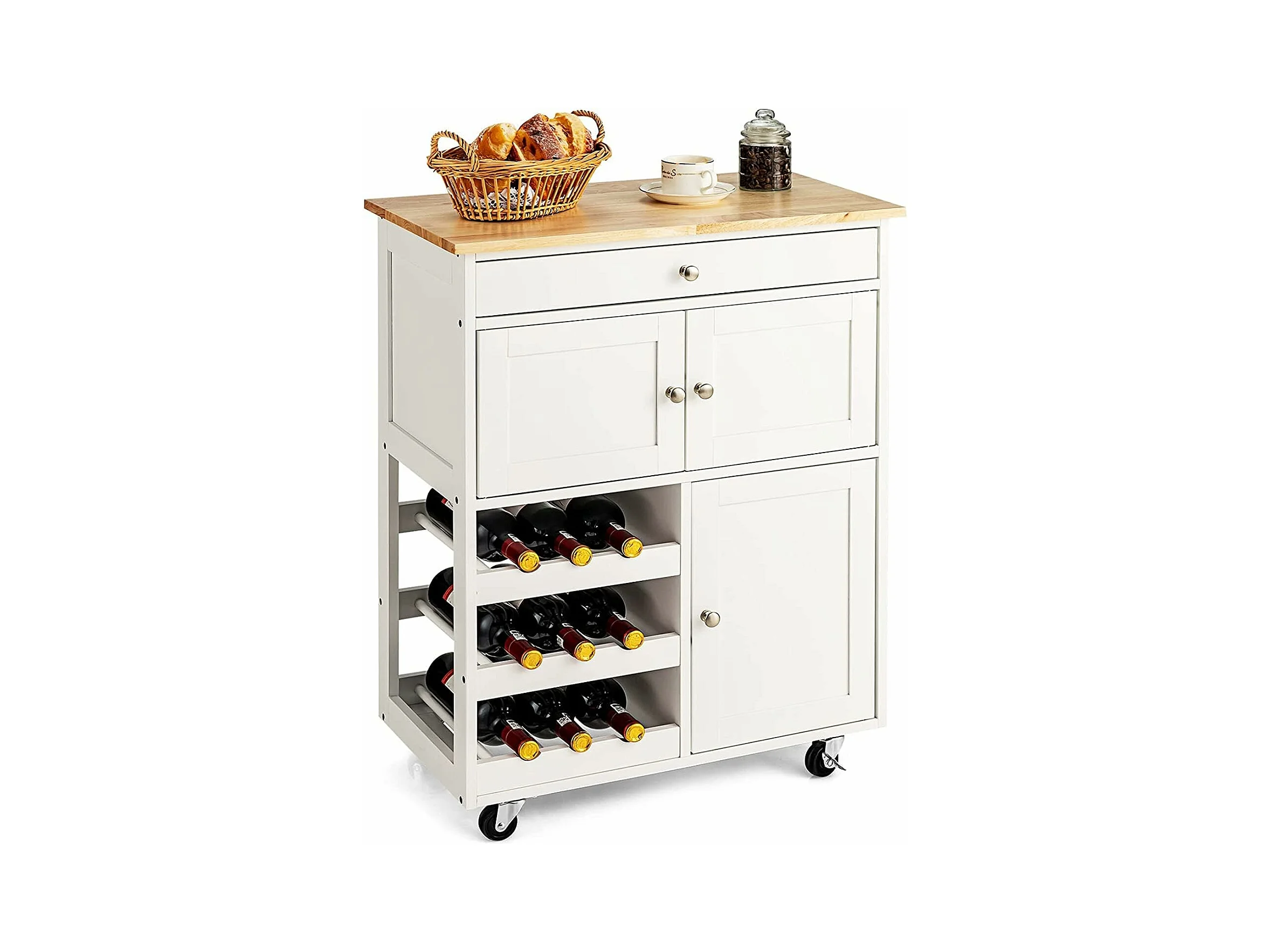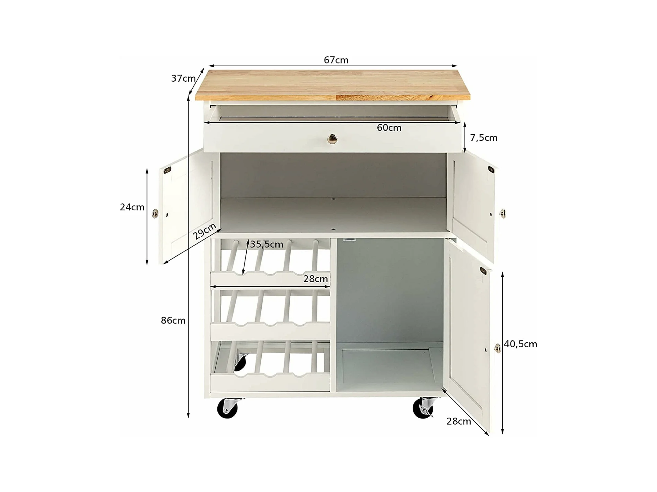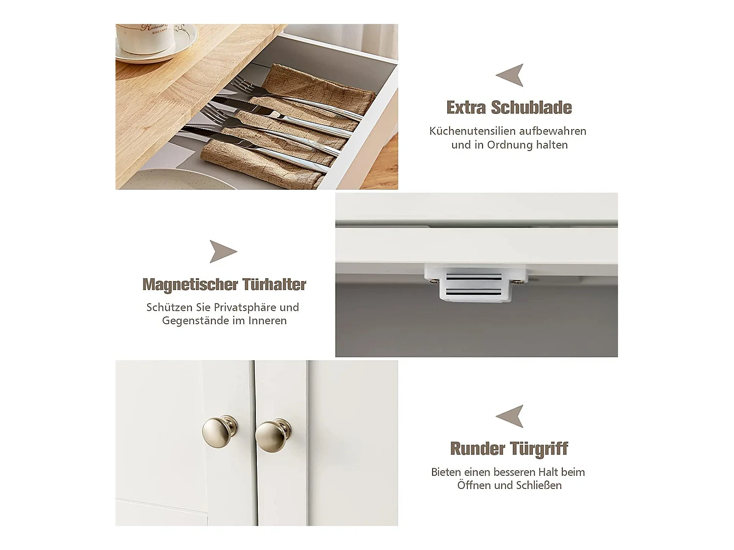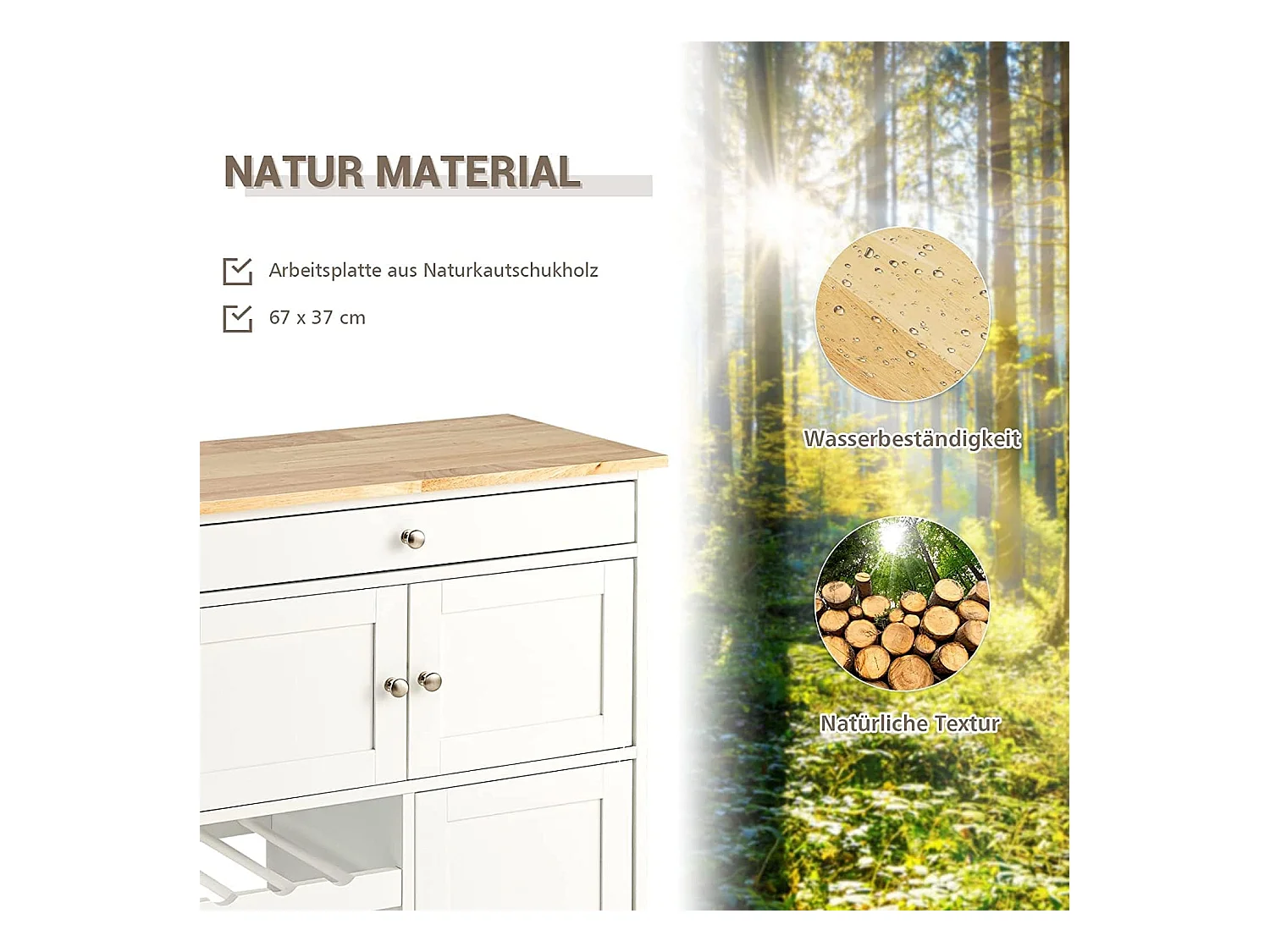 Servierwagen mit Schubladen und 3-stöckigem, Küchenwagen Küchenregal Rollwagen Holz weiß