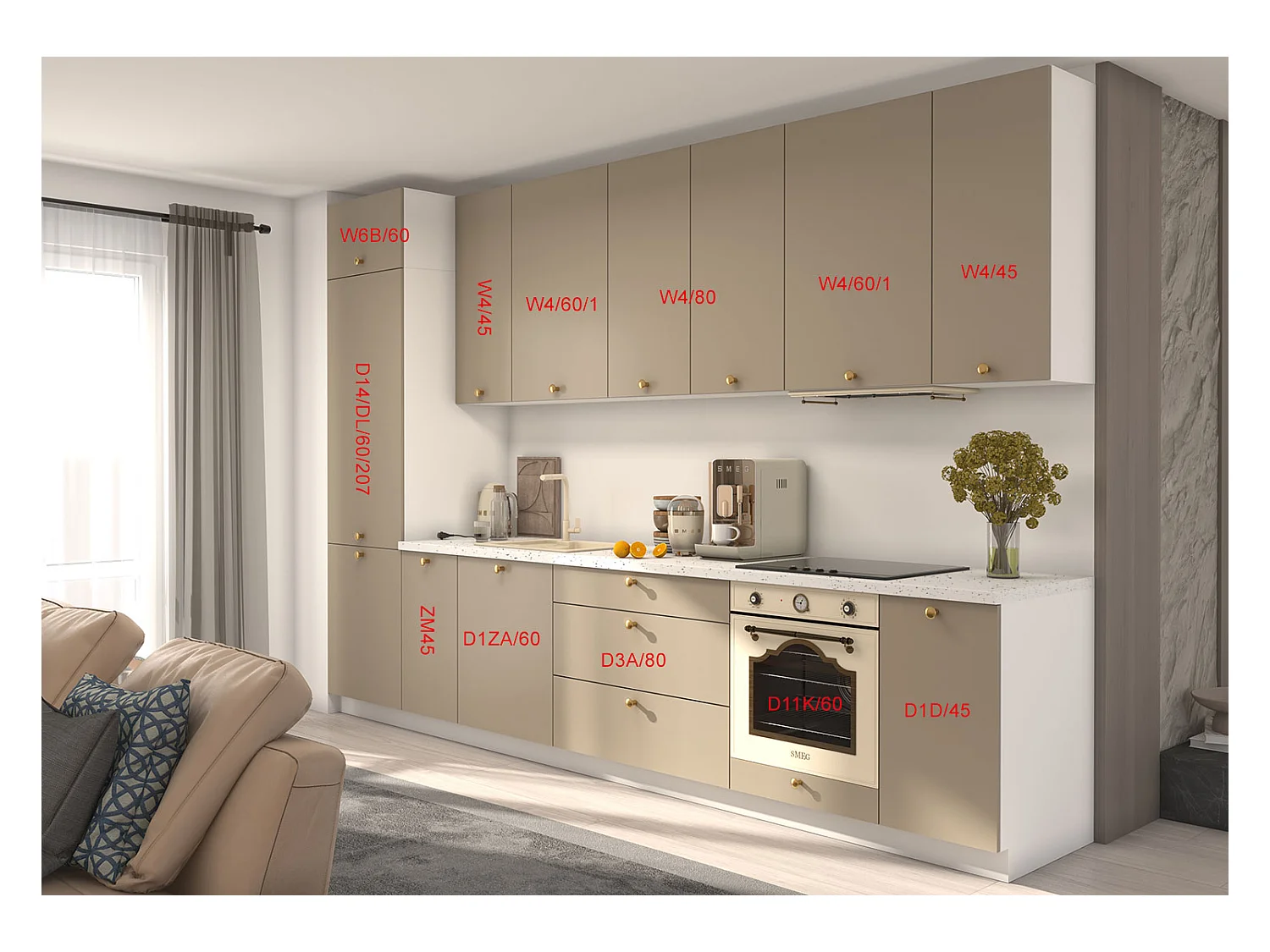 KÜCHENLEERBLOCK Bonn weiß matt / stone grey matt, Arbeitsplatte Andromeda Weiß 350 / 59 / 243cm 9-teilig
