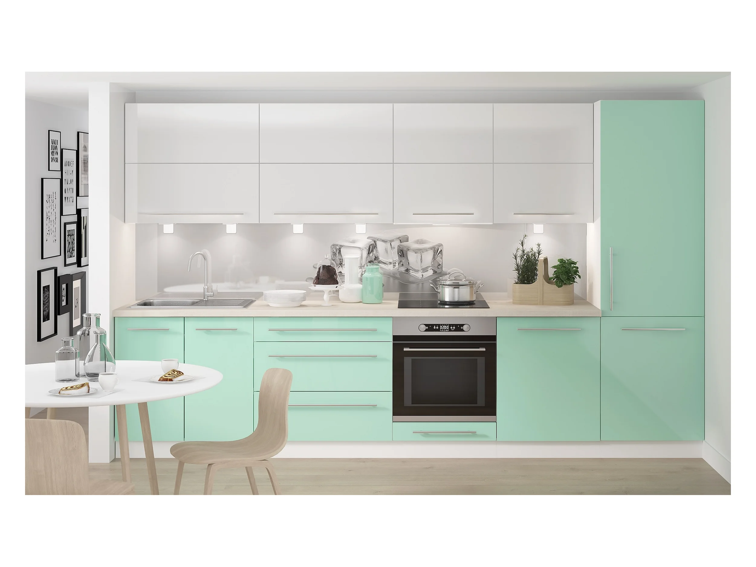 KÜCHENLEERBLOCK Brerra lichtgrün / reinweiß lackiert / weiß matt 9-teilig