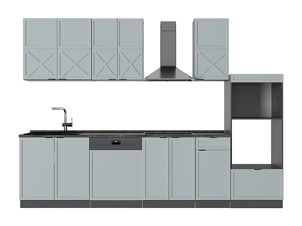 Küchenzeile hellblau-grau/anthrazit 300x60x81.6 fame-line