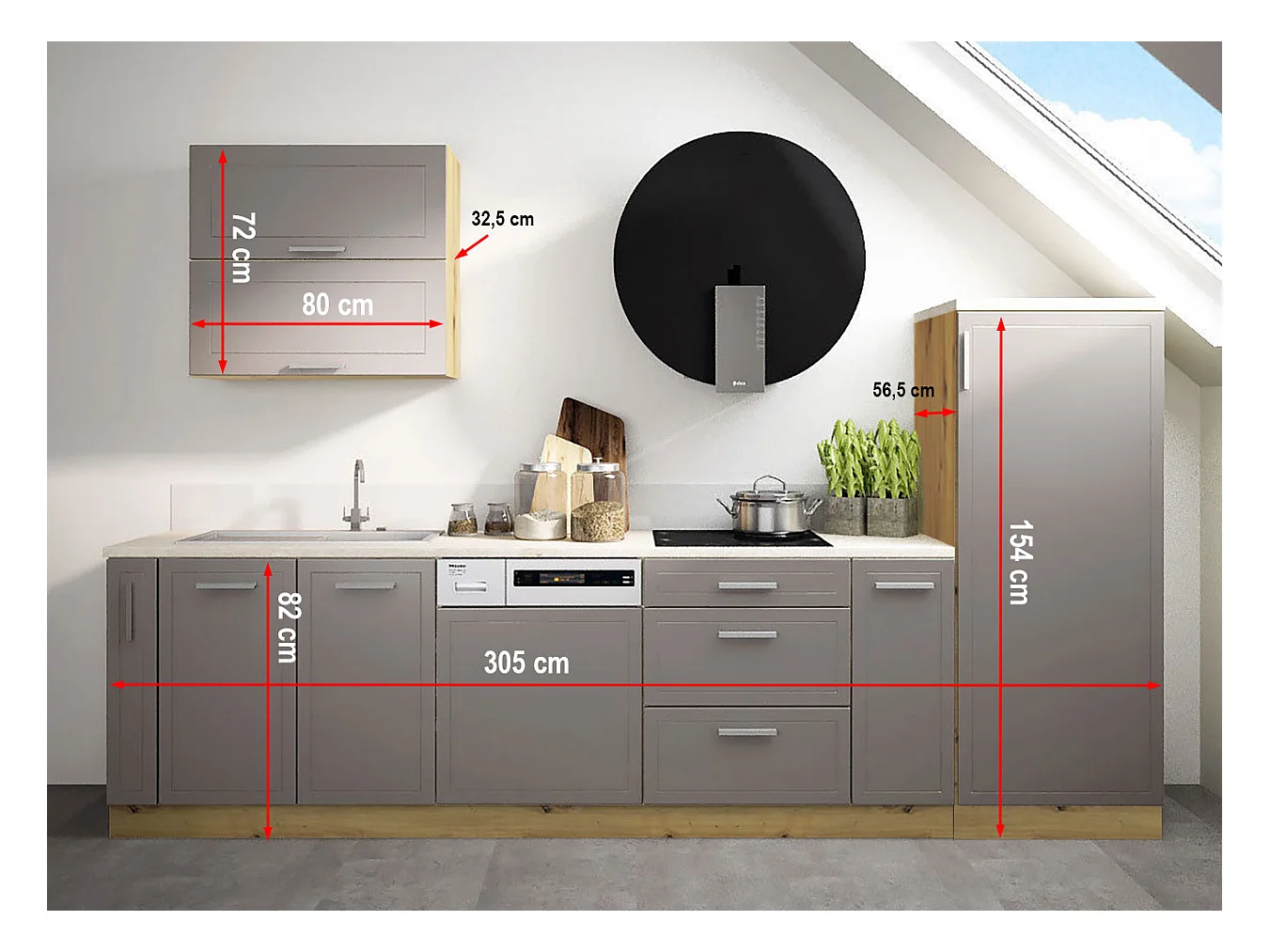 KÜCHENZEILE Kvantum Artisan Eiche / Beige Matt 290 / 59 / 207 cm (8-teilig)