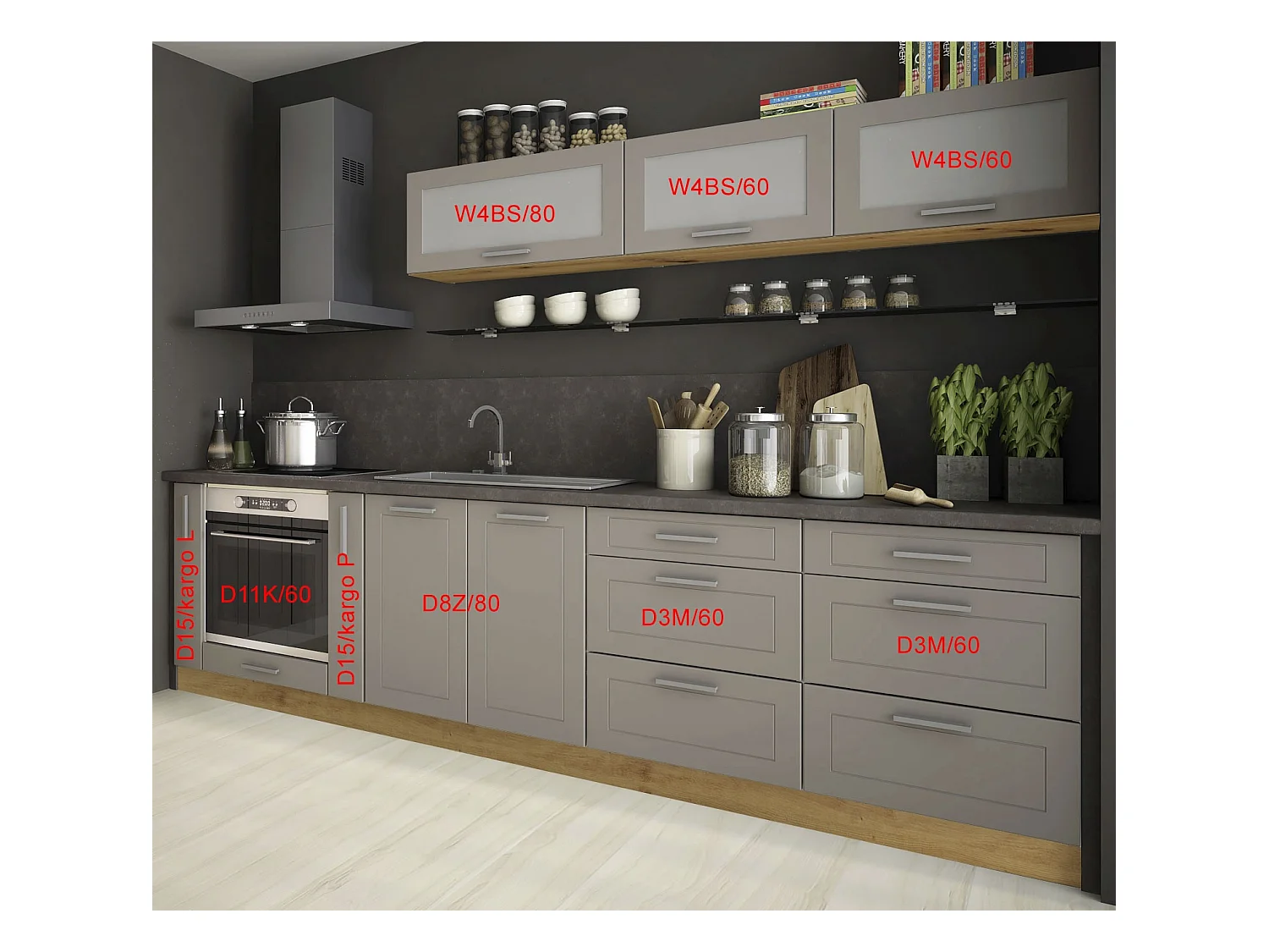 KÜCHENZEILE Kvantum Eiche Artisan / Beige Matt 290 / 59 / 207 cm (9-teilig)