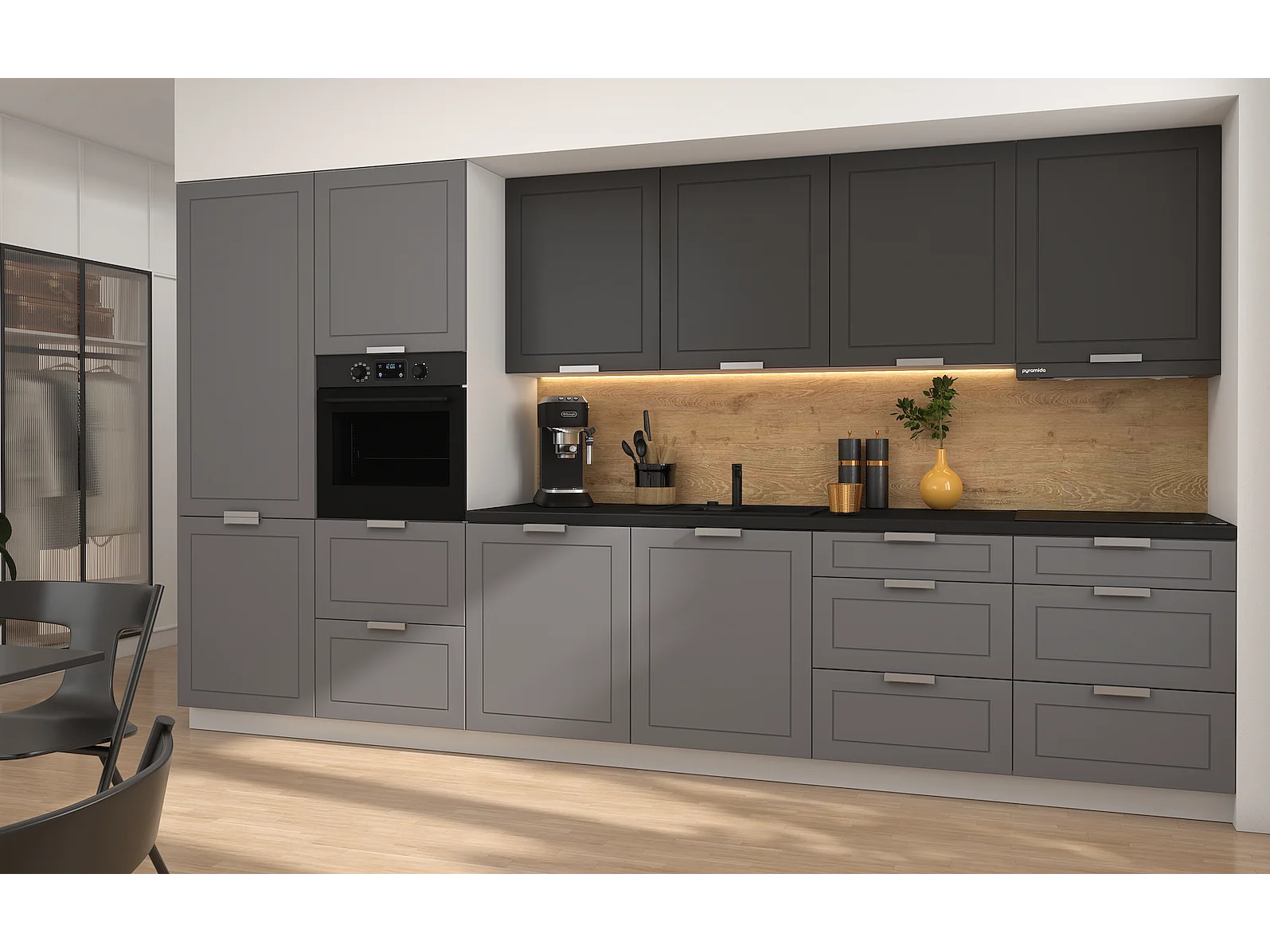 KÜCHENLEERBLOCK Kvantum weiß / dust grey & graphit matt 360 / 59 / 207cm 10-teilig