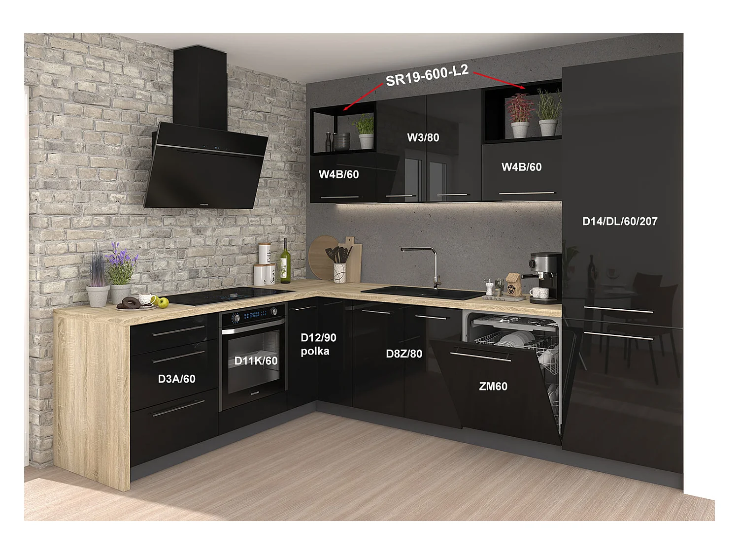 WINKELKÜCHE Essen lava matt / schwarz Hochglanz & Matt ; Arbeitsplatte Eiche Sonoma 290 / 210 / 207cm 11-teilig