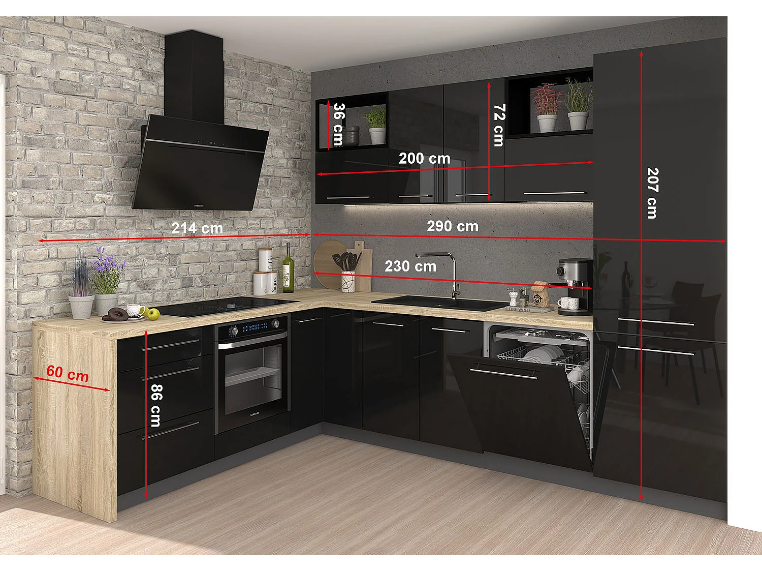 WINKELKÜCHE Essen lava matt / schwarz Hochglanz & Matt ; Arbeitsplatte Eiche Sonoma 290 / 210 / 207cm 11-teilig