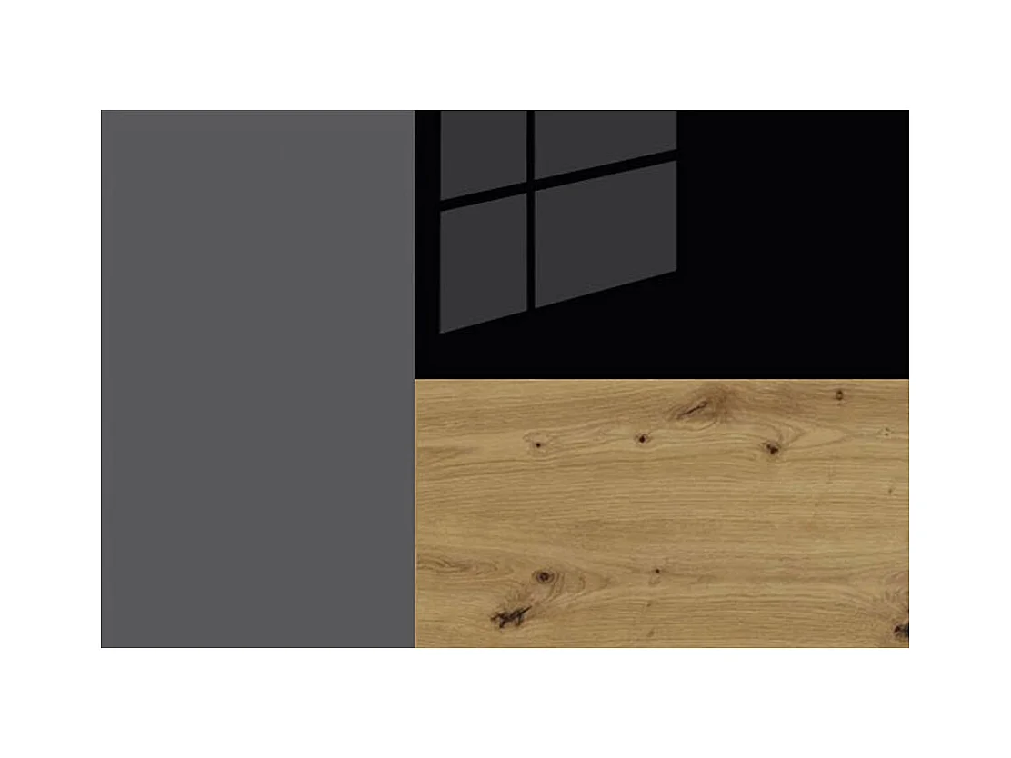 WINKELKÜCHE Florence lava matt / RAL 9005 tiefschwarz Hochglanz (K7); eiche artisan; schwarz matt; Arbeitsplatte eiche artisan 19-teilig