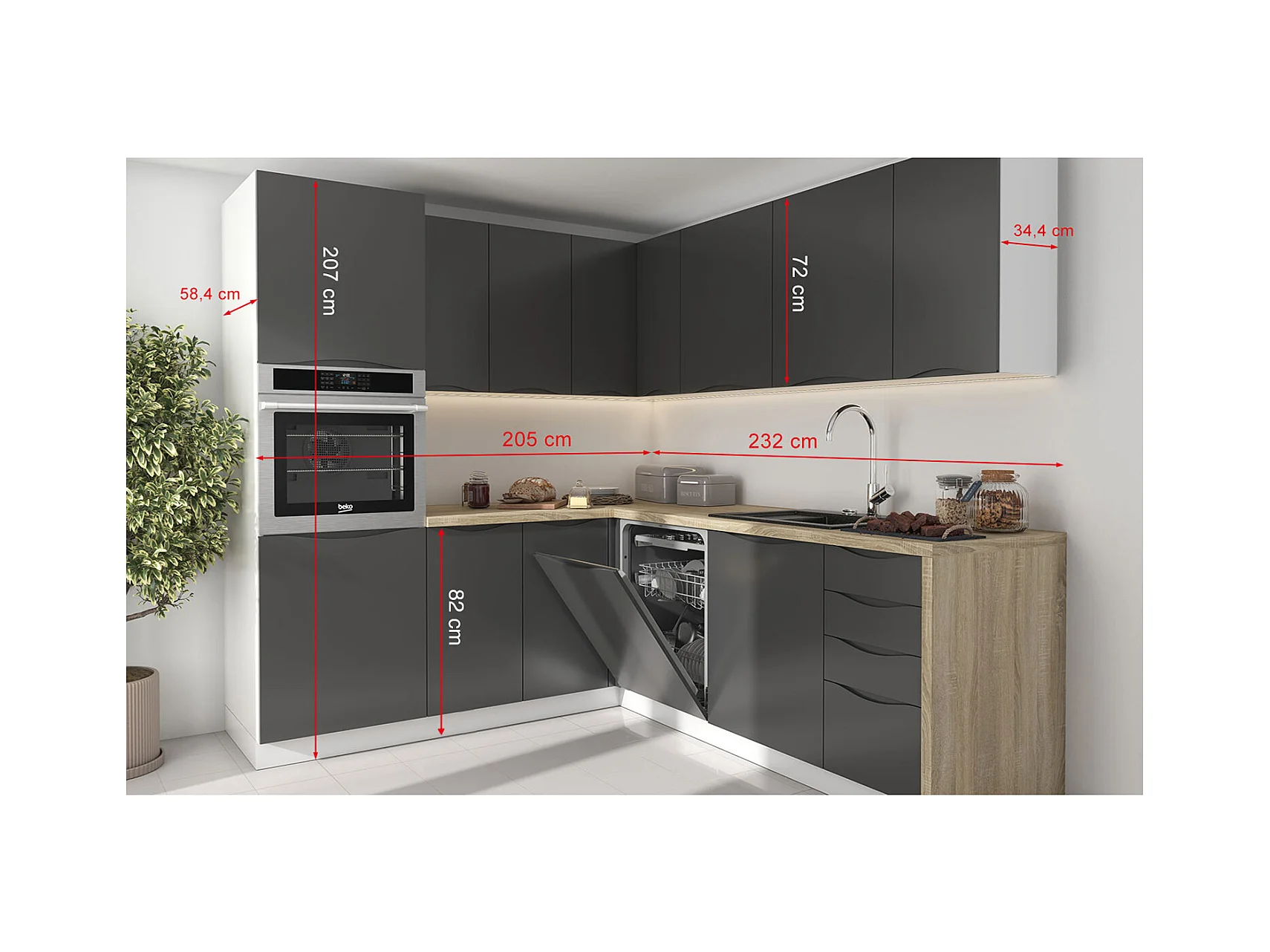 WINKELKÜCHE Napoli weiß matt / RAL 7012 basaltgrau (K5) 228/ 205 / 207cm 11-teilig