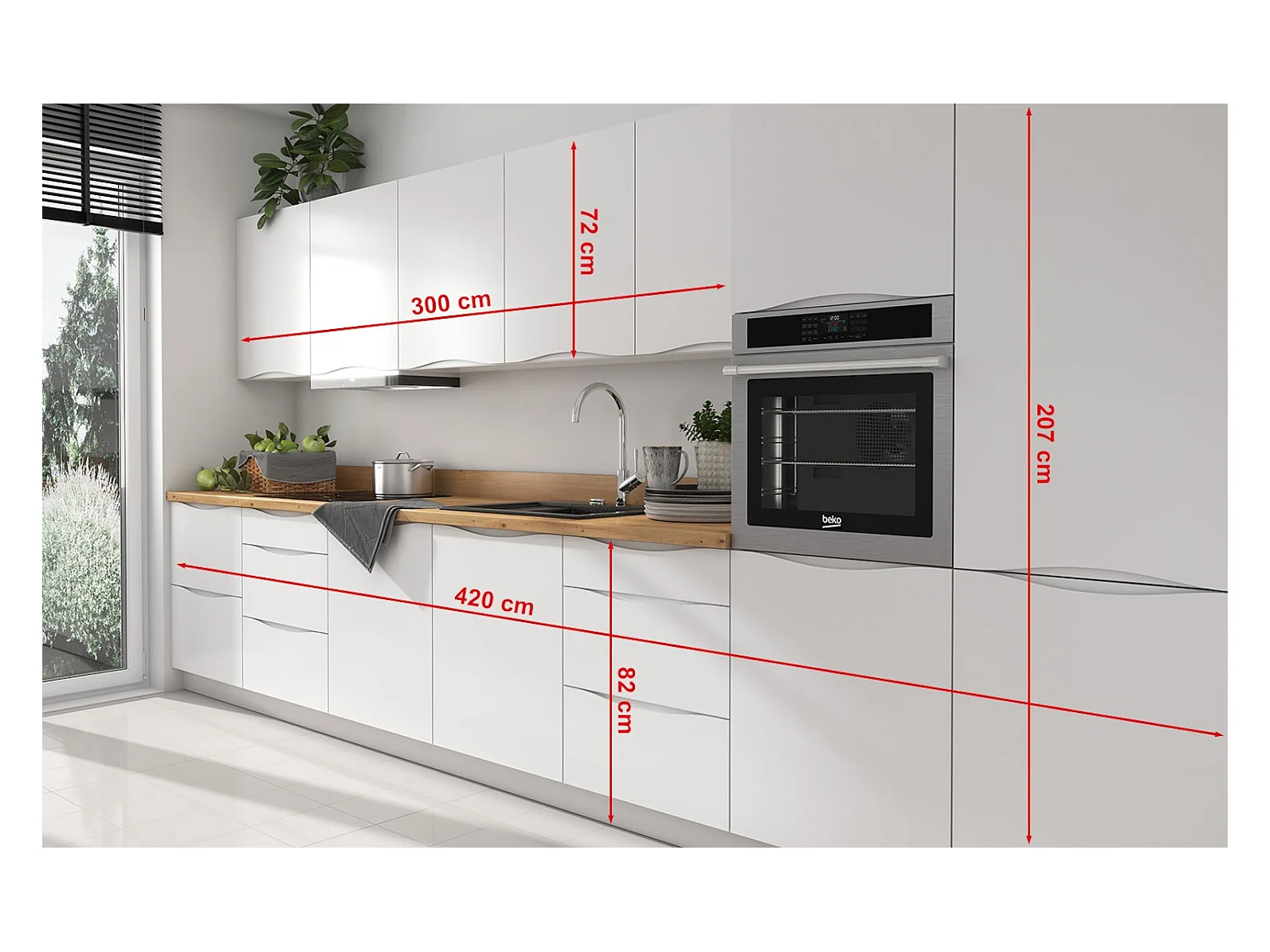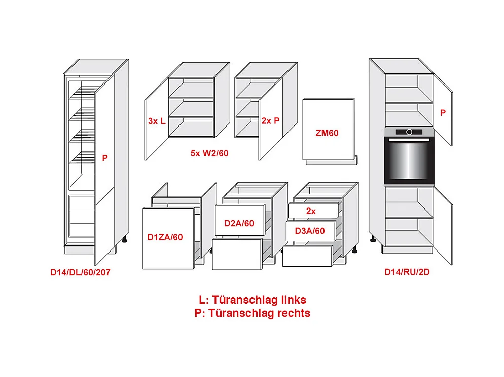 KÜCHENLEERBLOCK Napoli weiß matt / RAL 9016 verkehrsweiß (K5) 420 / 59 / 207cm 12-teilig