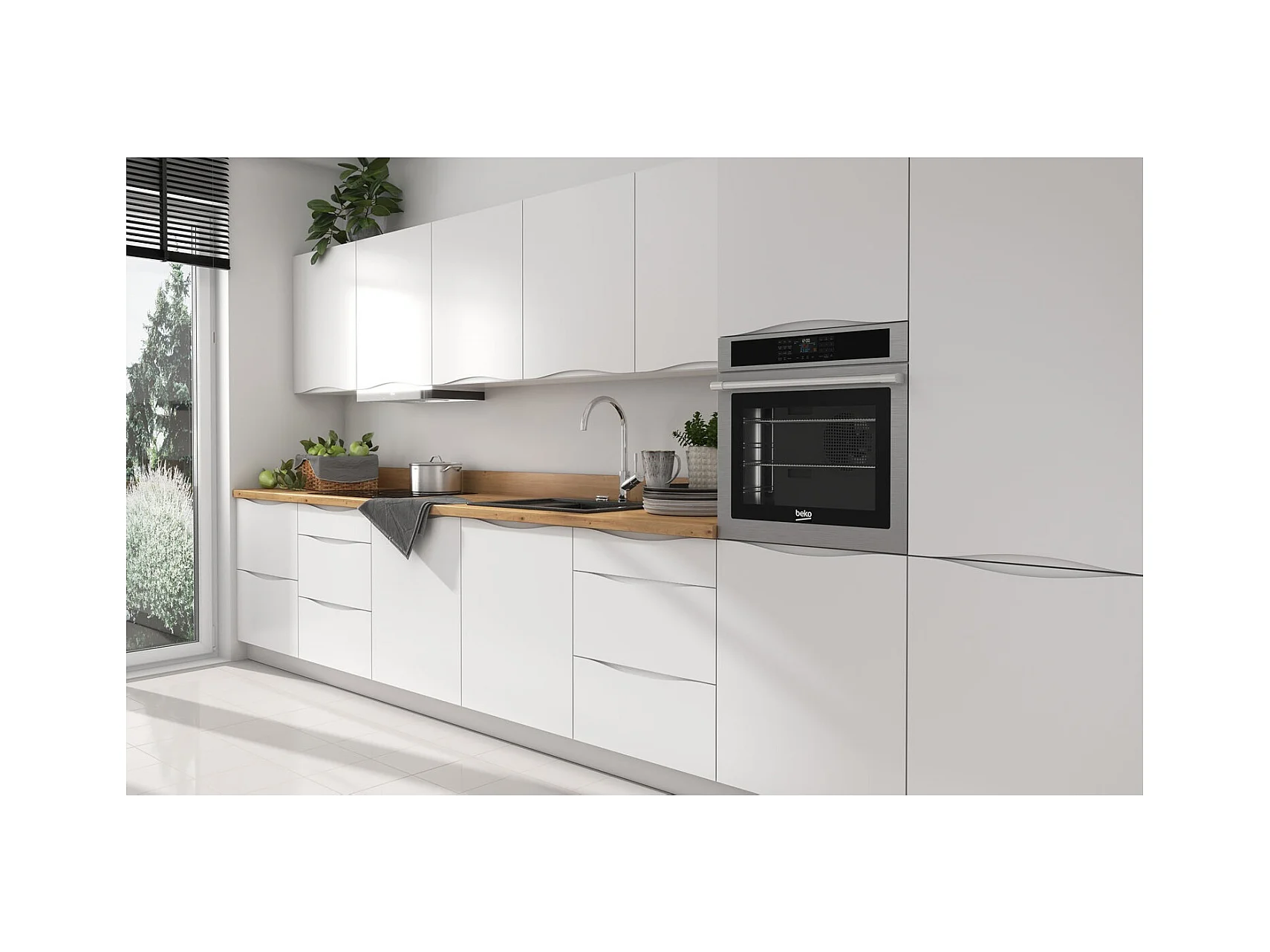 KÜCHENLEERBLOCK Napoli weiß matt / RAL 9016 verkehrsweiß (K5); Arbeitsplatte Eiche Artisan 420 / 59 / 207cm 12-teilig