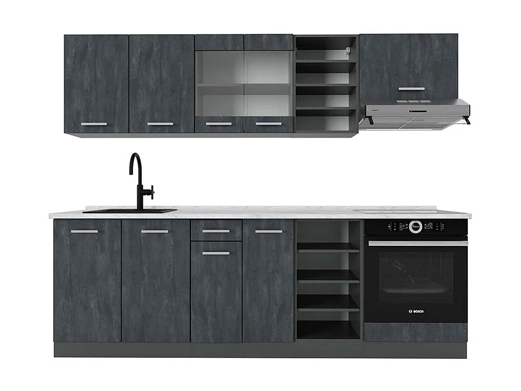 Küchenzeile schwarz beton/anthrazit 240x60x81.6 r-line