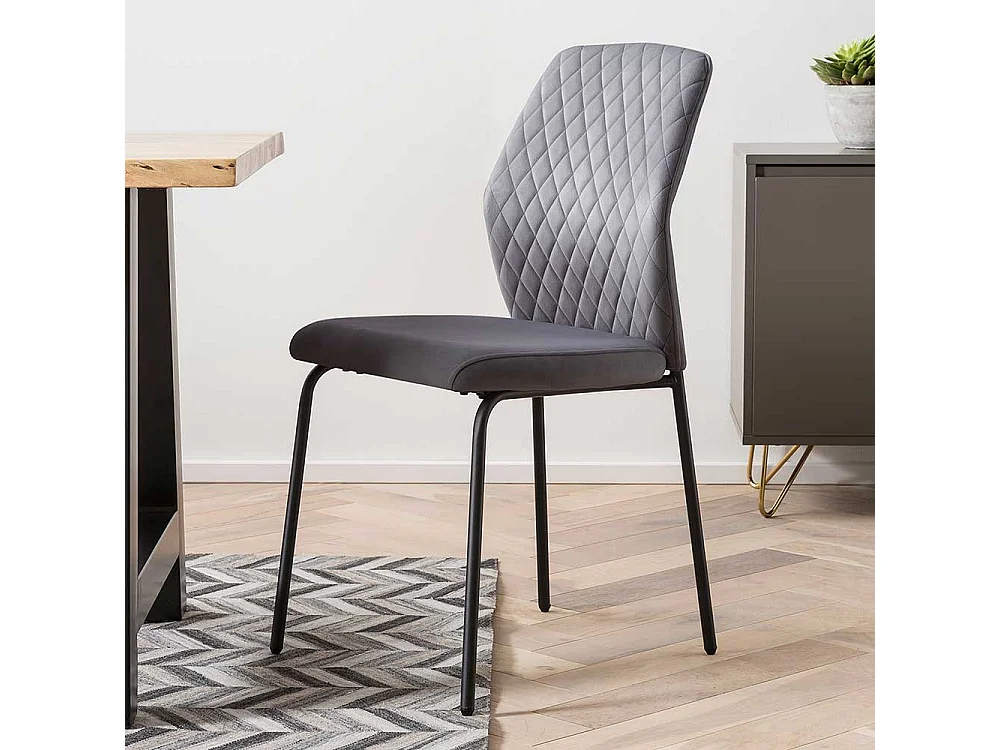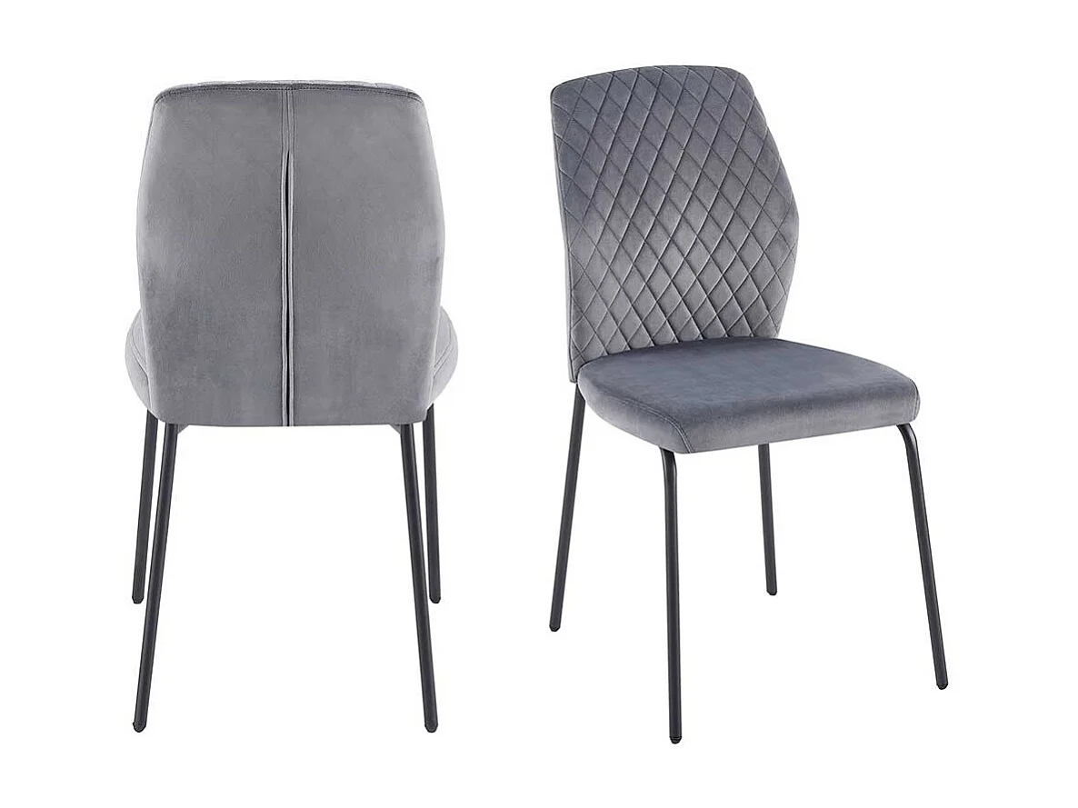 Kuechenstuhl Set Grau aus Samt und Metall 47 cm breit (2er Set)