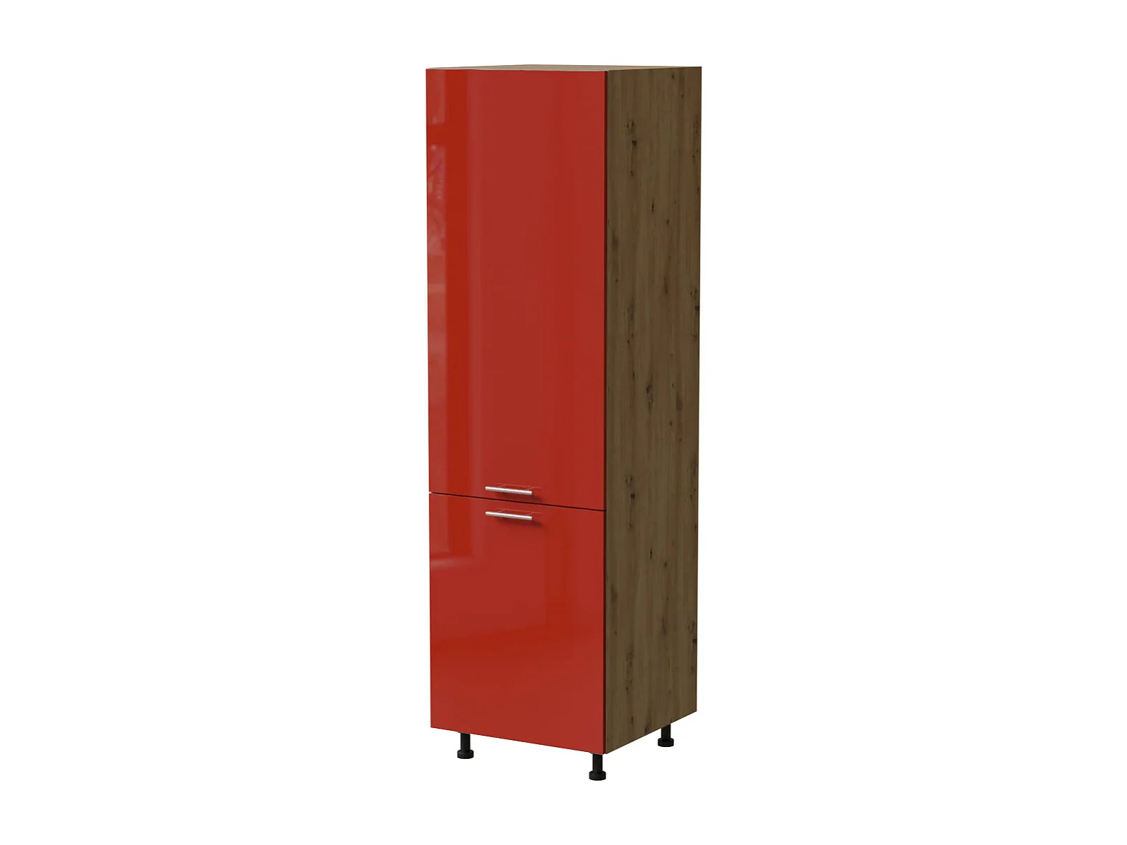 KÜHLSCHRANKUMBAUSCHRANK Brerra D14/DL/60/207 RAL 3002 karminrot Hochglanz / Eiche Artisan Matt 60 / 59 / 207cm
