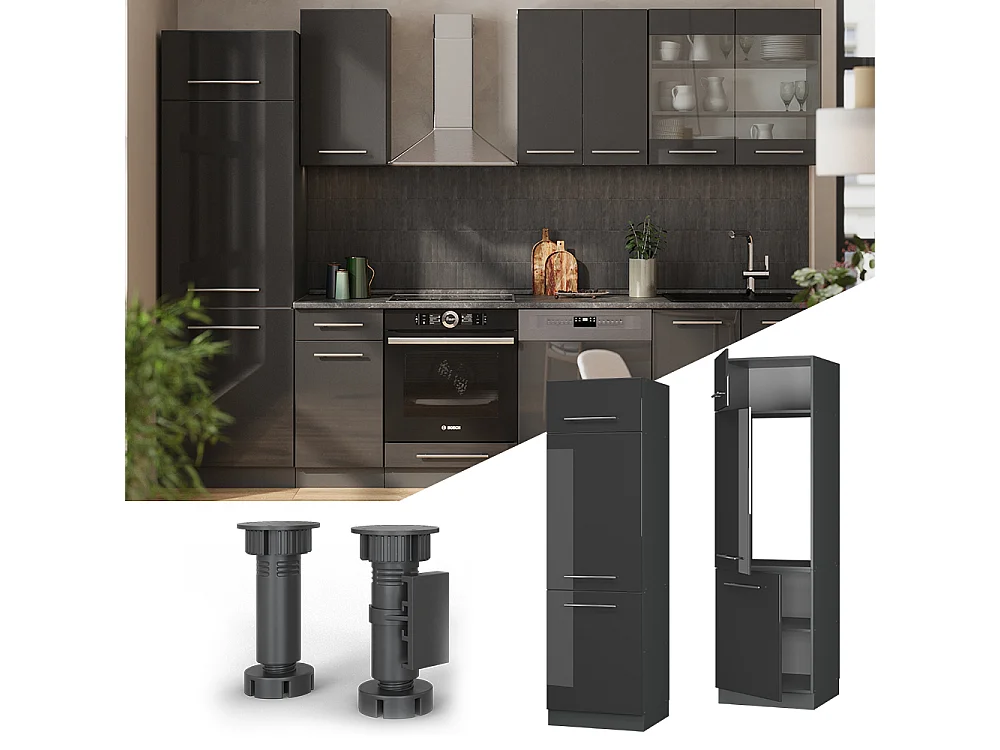 Kühlumbauschrank anthrazit hochglanz 60x58.1x206.8 fame-line