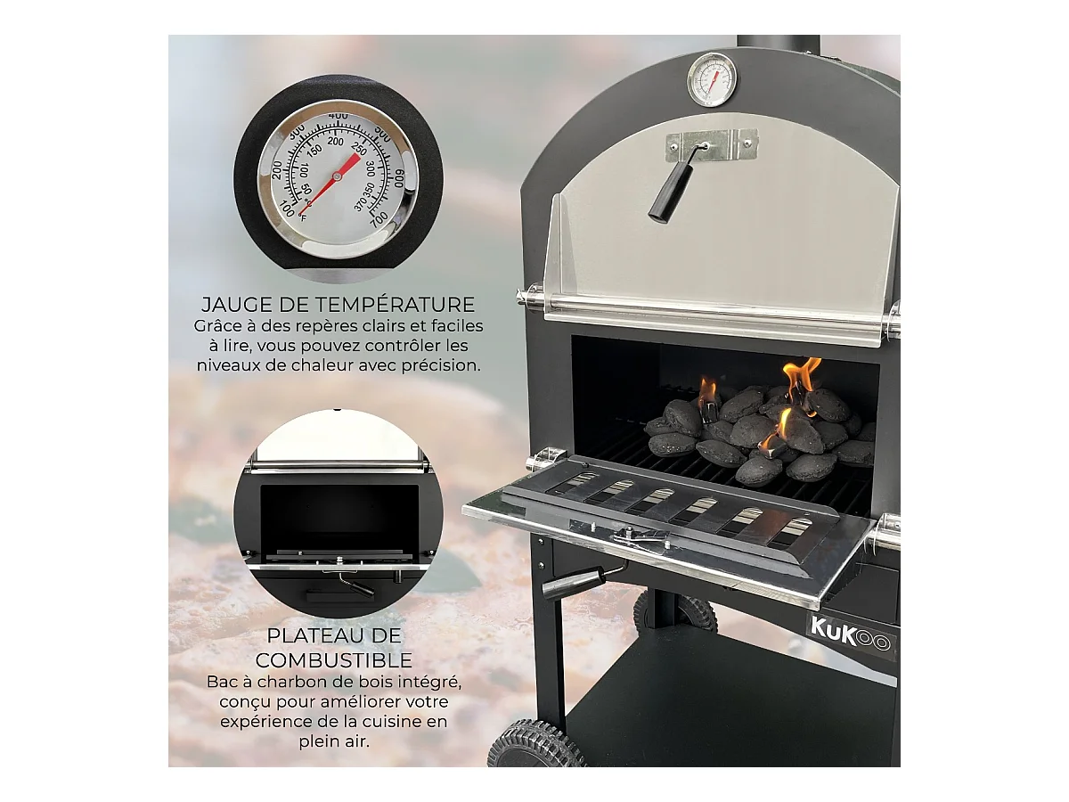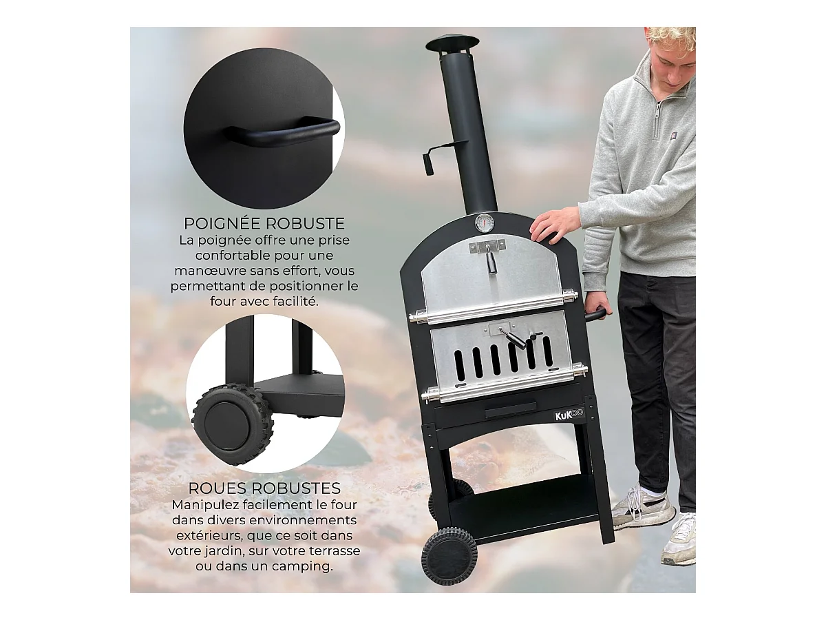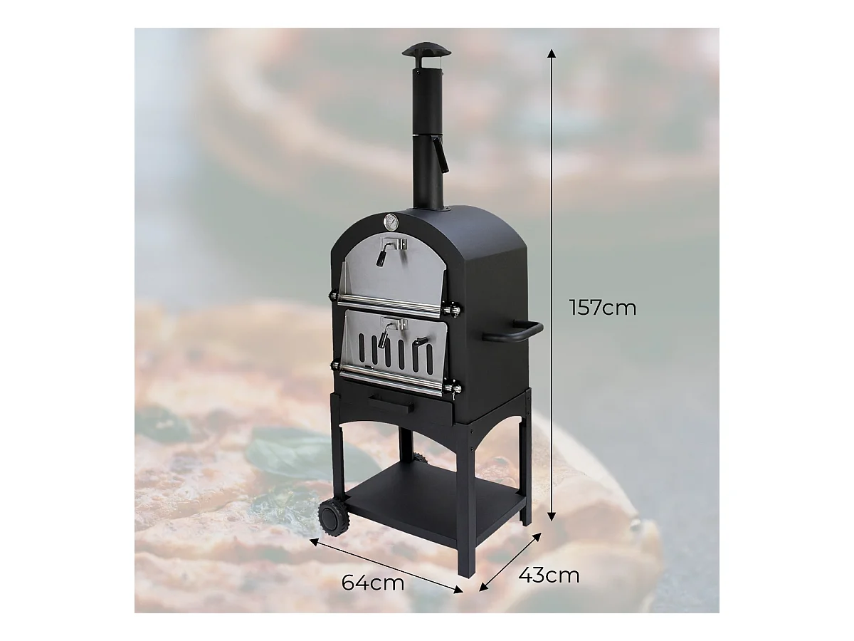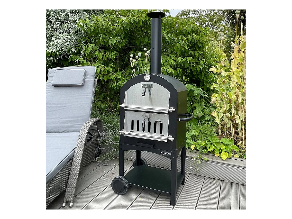 KuKoo Outdoor Pizzaofen Pizza Ofen Gartenofen Steinbackofen Smoker Grill 156 cm H x 64 cm B x 43 cm T Gratis Pizza Schieber