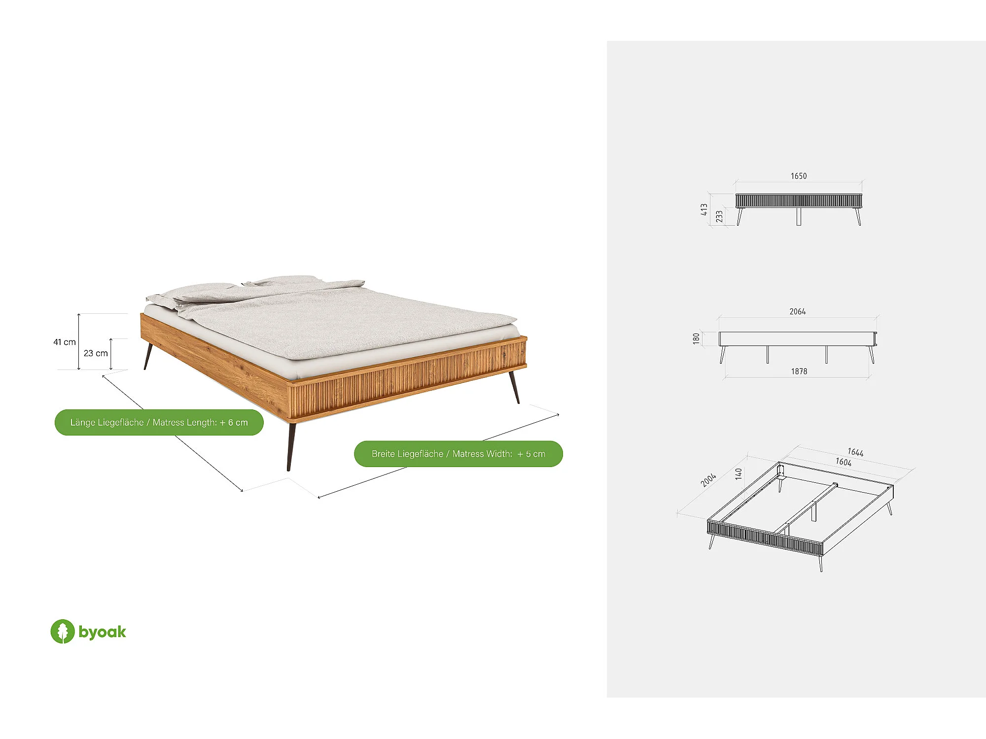 KULA - Bettgestell ohne kopfteil 180 x 200 aus Kernbuche naturgeölt